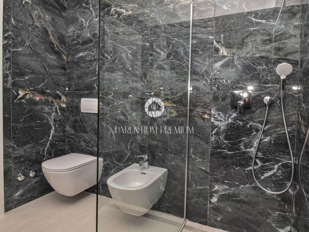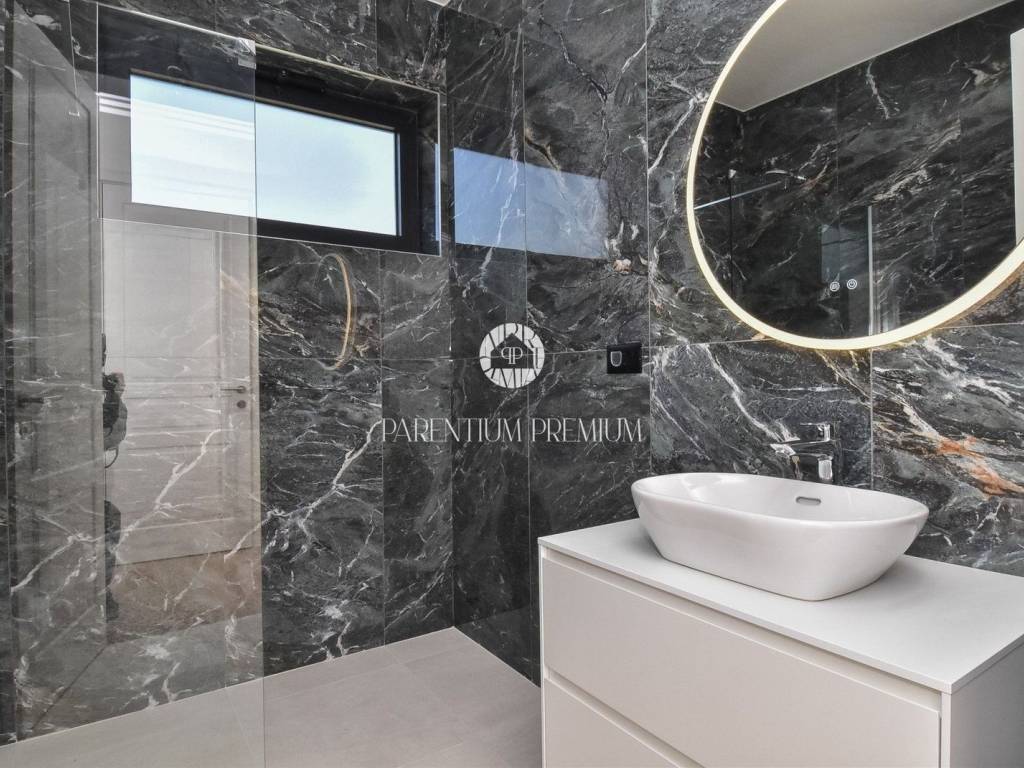 Istria, PorečLocated in a quiet and well-maintained suburb of Poreč, just 4 km from the town center and well-kept beaches, this representative luxury Istrian-style villa with a pool offers the perfect balance of modern comfort, privacy, and proximity to all amenities.The property offers 207 m² of living space and is situated on a beautifully landscaped 749 m² plot, at the very edge of the settlement, ensuring exceptional privacy, tranquility, and an open, unobstructed living environment.The villa is arranged over two floors and designed to the highest standards of contemporary living.The ground floor features a spacious open-plan living area combining the living room, kitchen, and dining area. Large glass walls flood the interior with natural light and provide direct access to the terrace with sun deck and swimming pool, creating a seamless connection between indoor and outdoor spaces. This level also includes two elegant bedrooms, each with a private bathroom, a guest toilet with laundry area, and a practical storage room with both internal and external access.Upstairs are two additional spacious bedrooms, each with its own bathroom, ensuring maximum comfort and privacy for family members and guests.A special highlight is the upper-floor terrace with a jacuzzi, ideal for relaxing, enjoying summer evenings, and admiring beautiful sunsets.The fully fenced garden enhances privacy and security, while the centerpiece of the outdoor area is an impressive swimming pool with sunbathing area and outdoor shower. The garden is enriched with Mediterranean plants, creating an authentic Istrian atmosphere. The property also offers parking for at least two vehicles, accessed through an electric gate.High-quality materials were used throughout the construction and furnishing, with authentic Istrian stone cladding giving the villa a distinctive and elegant character.The villa is equipped with premium comfort and security systems: underfloor heating throughout via a heat pump, air conditioning in all rooms, triple-glazed windows, motorized shutters, alarm system, video surveillance, automatic irrigation system, and an electric entrance gate, ensuring comfort, safety, and energy efficiency all year round.The seller is a legal entity, therefore the buyer is exempt from real estate transfer tax.A rare opportunity to acquire a luxury property that offers privacy, elegance, and an excellent location – ideal as a dream home or a secure investment.