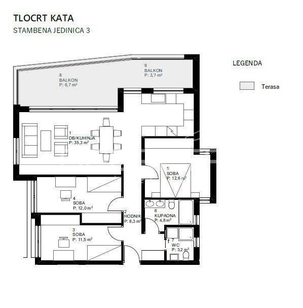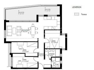 Kvadratura stana: 100,60 m2 Kvadratura balkona: 20,08 m2 Broj spavaćih soba: 3 Broj kupaonica: 2