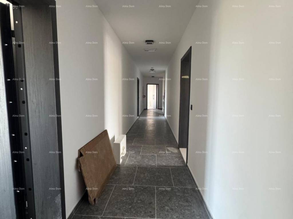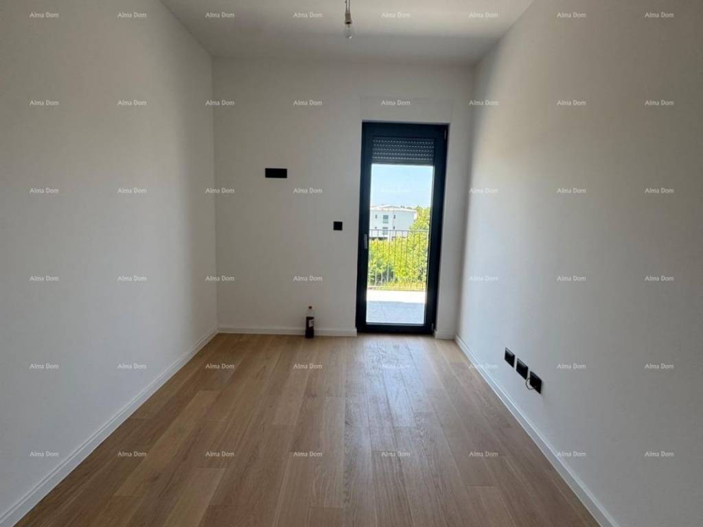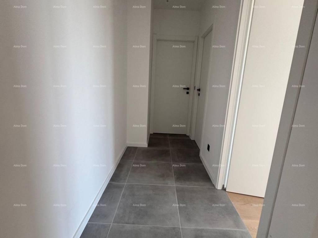 In the city of Umag, as part of a modern residential project with 122 apartments, an apartment is for sale on the 2nd floor of the building, with a total area of 55.86 m², including a storage room and a parking space. Apartment labeled 2-08 is located on the 1st floor of the building and consists of:- Entrance hall- Kitchen and living room- Bathroom- Bedroom- Balcony (11.18 m²)The apartment also comes with:- Storage room (3.15 m²)- Garage parking spaceTechnical specifications:- Reinforced concrete structure- Thermal insulation facade (ETICS, 10 cm)- High-quality PVC joinery, lift-and-slide doors- Electric blinds in the rooms- Multi-split air conditioning in all rooms- First-class ceramics and parquet flooring- Individual electricity and water meters- Video intercom, internet, and TV connectionsThe building includes:- 74 garage spaces, 82 outdoor, and 25 covered parking spaces- A total of 105 storage rooms- Elevator and staircases from 4 main entrances- Basement level with garages and access- Apartments from the 1st to the 3rd floorLocation:100–500 m from kindergarten, school, shops, sports facilities, and the center700 m to the sea, promenade, and town beach.Completion of construction is planned for the end of 2025.For more information, please feel free to contact us:Azra +385 91 611 5706 +385 98 420 885 azra@almadominvest.com