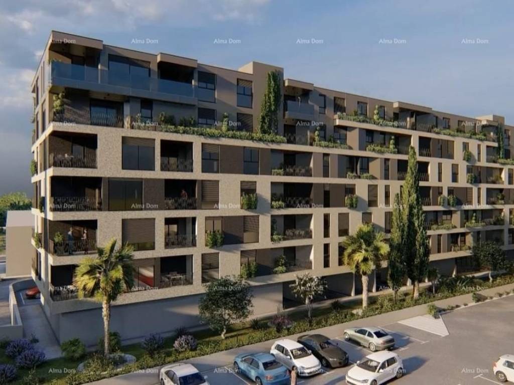 Pula!We offer an apartment on the 5th floor of a multi-family building with an elevator. The apartment will consist of an entrance hallway + wardrobe, 1 bedroom, a bathroom, a kitchen with a dining area, a living room, and a covered terrace.EQUIPMENT:- Electric underfloor heating in the bathroom- Ariston Velis electric water heater- Security entrance door- Inverter air conditioning unit- Ceramic tiles- Laminate flooring- Internal white room doorsThe apartments are sold finished, on a "turnkey" basis.Excellent location. Close to a shopping center and the city center of Pula - 1 km away.The building will have two entrances, two elevators, and 6 floors.More available apartments are on offer.The apartment includes a parking space, which is included in the price.*VAT is included in the price.The planned completion of construction work is the beginning of 2026.Info:Azra Valjevac+385 91 611 5706azra@almadominvest.com+385 98 420 885