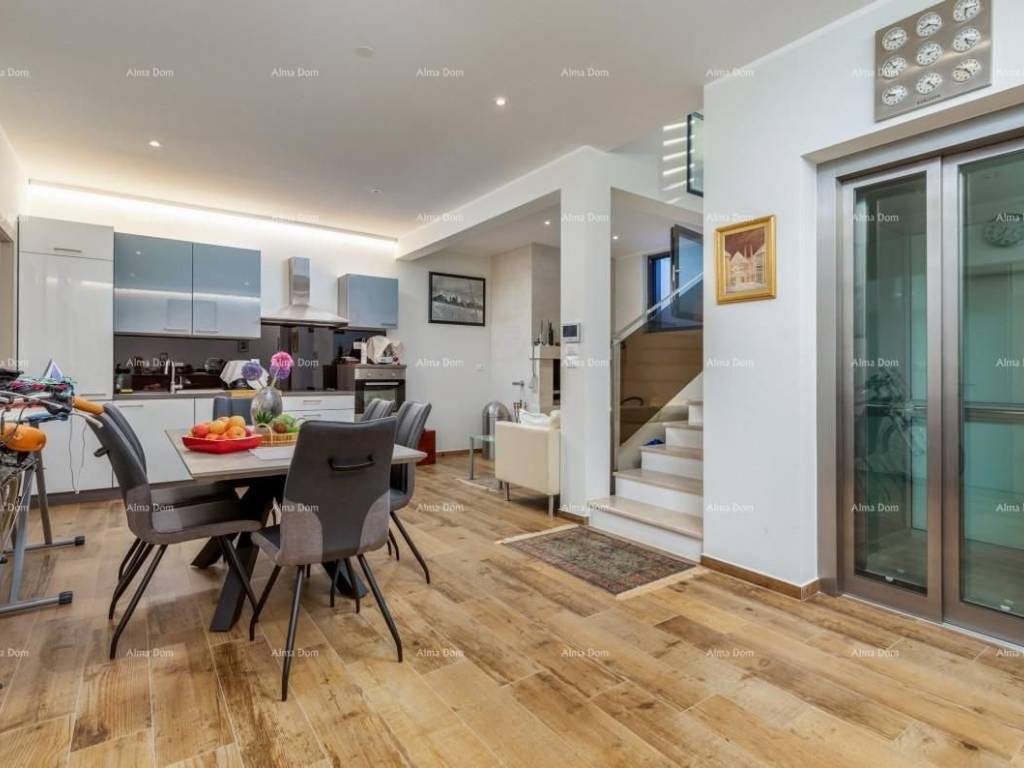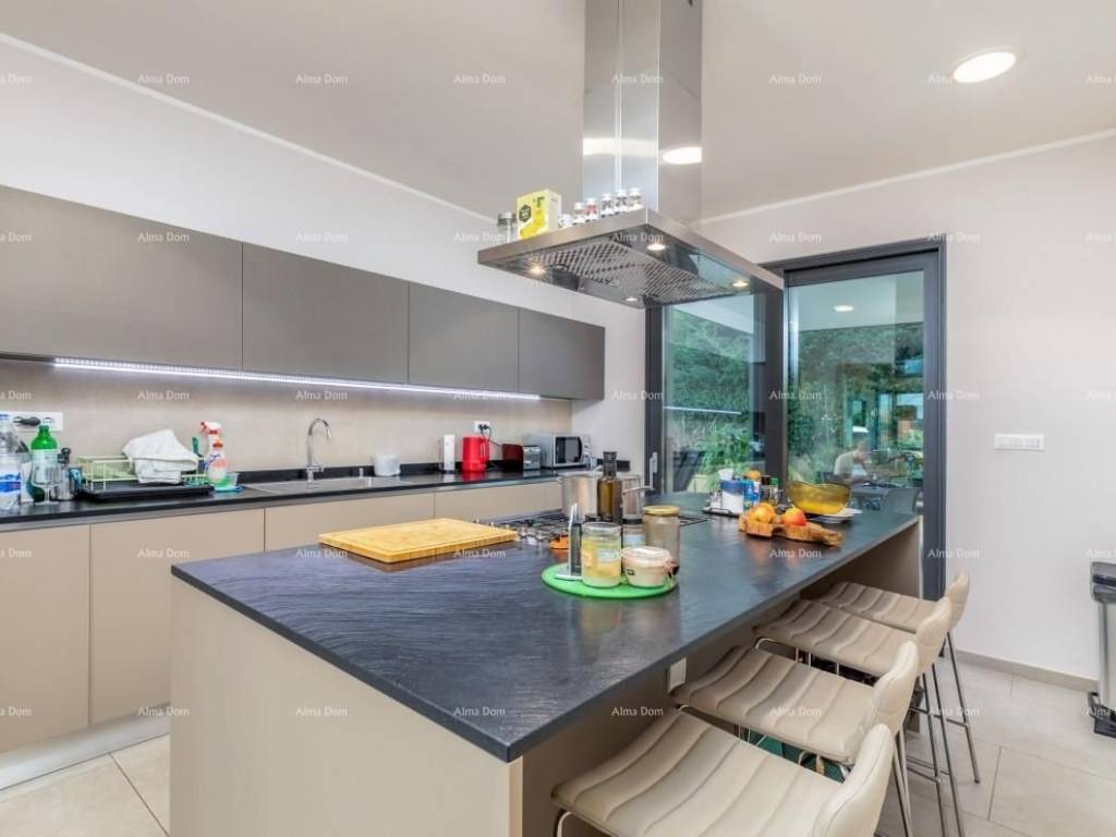 We are selling a luxury villa seventy meters from the beach!The luxury house was built in 2016 and on that occasion only the highest quality materials were used.It consists of a basement, ground floor and first floor.In the basement there is a large tavern with a fireplace, lined with Brač stone, toilet, laundry and boiler room.The ground floor has a large living room, kitchen, dining room, toilet and a large bedroom with its own bathroom.Upstairs are four more bedrooms, each with its own bathroom.The roof terrace offers a beautiful view of the sea and Brijuni.The house has an elevator that connects all floors, from the basement to the first floor.In the landscaped garden there is a heated pool with a waterfall and a massage area and a hydro-massage bathtub for seven people.The garden is covered with irrigation, the whole house has an alarm system and video surveillance. Central suction system in each room. Heating and cooling on heat pumps.Contact:azra@almadominvest.com+385 91 611 5706gojko@alma-nekretnine.com+385 95 47 00000