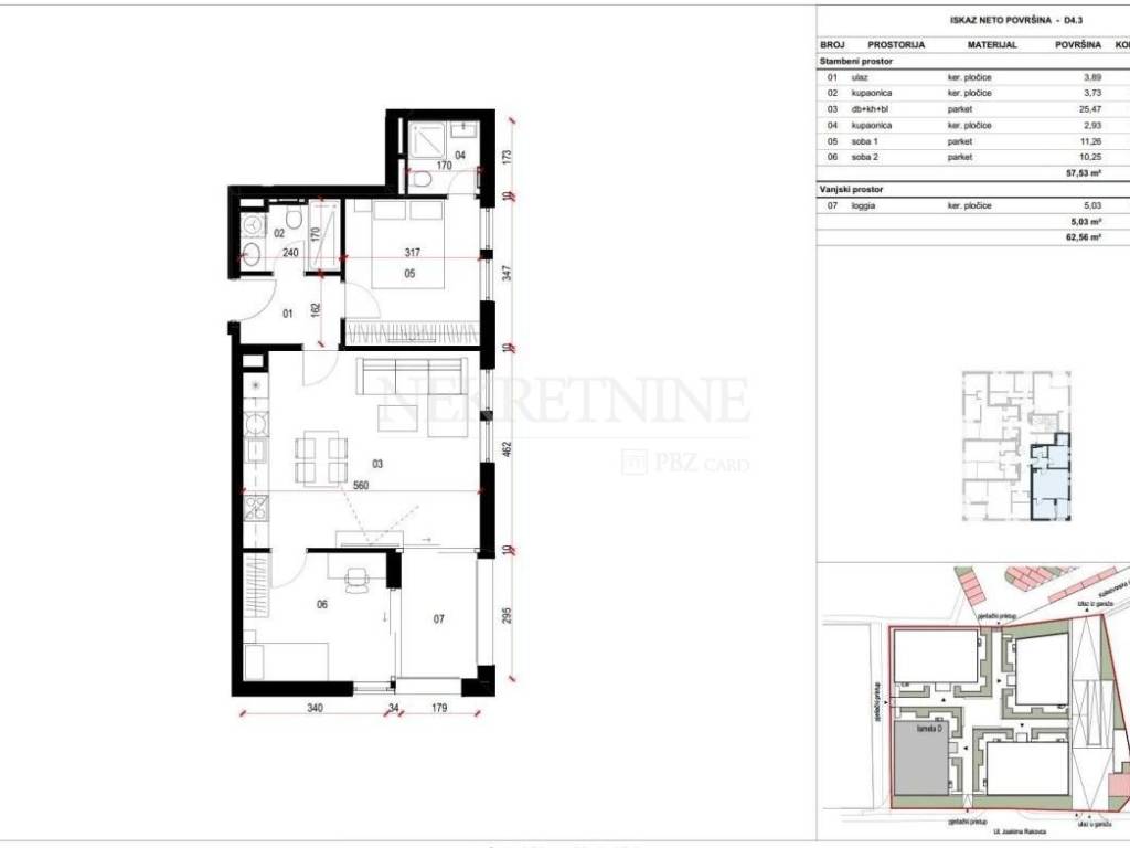 Površina stanova je u rasponu od 37,63m do 130,60m