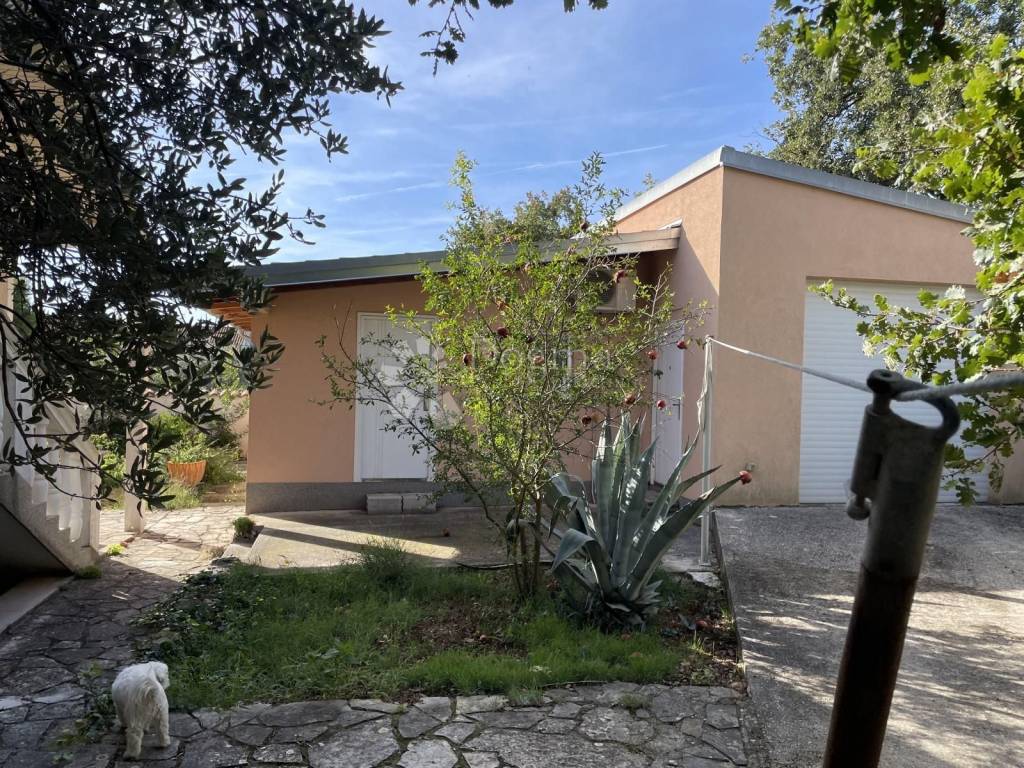 The house consists of a basement, ground floor, and attic. The basement includes a garage and additional auxiliary rooms that can be used as storage or technical areas. The ground floor features a spacious and functional apartment with two bedrooms, a comfortable living room connected to the kitchen and dining area, a bathroom, an additional guest toilet, and a large covered terrace ideal for outdoor living. From the ground floor there is direct access to the beautifully landscaped yard.