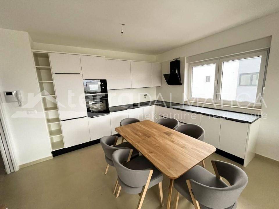 In the vicinity of Zadar, on the island of Ugljan, a three bedroom apartment is for sale in a new building 200 m from the beach. It is located on the ground floor of a newly built building with a total of six residential units distributed over three above-ground floors, while the underground floor contains parking spaces and storage rooms. The building is part of a project consisting of two buildings with a shared pool. Apartment A1 consists of a living area of 88.85 m2, a covered terrace of 21 m2, a garden of 33 m2, and a parking space and a storage room in the basement. The residential part of the apartment consists of an open space kitchen, dining room and living room, as well as three bedrooms, three bathrooms and a hallway. The apartments are sold fully furnished. Ugljan is the closest and most developed island of the Zadar archipelago, which is located opposite the city of Zadar. It is connected by numerous ferry and catamaran lines, the ride of which takes only 20 minutes. The diversity of the tourist offer, the beauty of the landscape characterized by dense pine forests, sandy and rocky beaches on the shores of the crystal clear sea give this fairytale place a special significance. Contact our agent and schedule your tour.