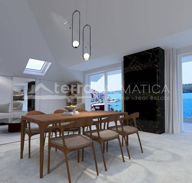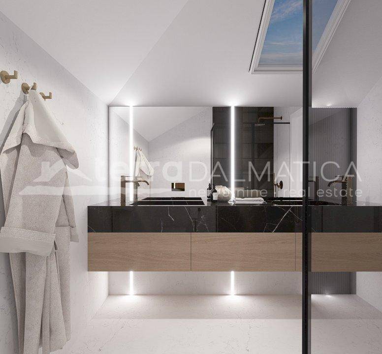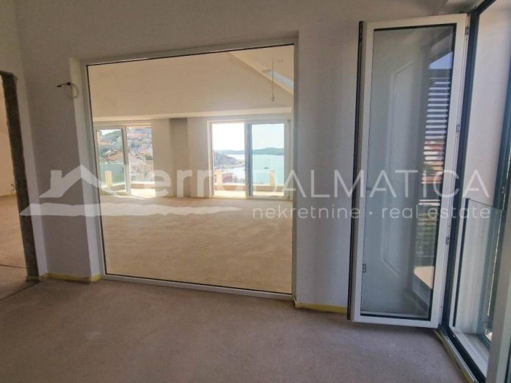 A spacious apartment for sale in Šibenik, located on the third floor of a building with a total of four floors, just two minutes' walk from Banj Beach. The apartment consists of three bedrooms, a spacious kitchen, a dining area, and a living room, all combined in an open-concept space with access to a large terrace offering stunning views of the sea and the historic part of the city. The apartment also includes two modern bathrooms, one of which is en-suite in the master bedroom. It is equipped with air conditioning in all bedrooms, while the living room has two units for optimal cooling and heating. The underfloor heating is powered by a heat pump, and the apartment is prepared for smart home technology, allowing the future owner to control various functions conveniently. High-quality insulation ensures peace and energy efficiency. The building has an elevator, and the buyer has the option to choose flooring according to personal taste within the defined budget. This apartment is ideal for those seeking a luxurious and comfortable life close to the beach and all the amenities Šibenik offers. For further information and to arrange a viewing, feel free to contact us!