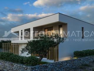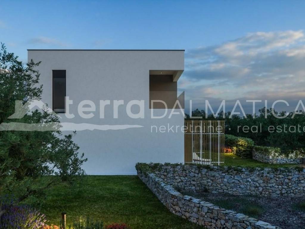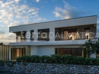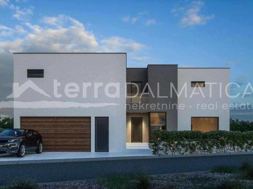In Bilice, just a short walk from all necessary amenities, a villa with a heated pool is for sale, only 80 meters from the sea. The villa is currently in a phase where future owners have a unique opportunity to personalize the interior according to their own desires and needs. This luxury property spans two floors – ground floor and first floor, offering enough space for comfortable and functional living. Upon entering the villa, you are welcomed by a spacious hallway, which includes a guest toilet and wardrobe. From the hallway, you can access a modern, open-concept kitchen with a pantry, a dining room, and a spacious living room. This open plan allows natural light to flow and creates a sense of spaciousness, while the living room is ideal for relaxation and social gatherings. The living room opens onto a terrace, offering the perfect place to enjoy the outdoors, whether you’re looking to relax or host family gatherings. From the hallway, there is also access to a two-car garage and storage room. An internal staircase leads to the first floor, where four elegant bedrooms are located. The master bedroom is equipped with its own en-suite bathroom, wardrobe, and access to the terrace, providing maximum privacy and comfort. The other two bedrooms have their own wardrobes, while the last bedroom also has an en-suite bathroom. Parking is provided for two cars. The windows and sliding elements will be made by renowned manufacturers, with multi-chamber PVC profiles or aluminum thermoprofiles, with thermal glass, electric shutters, and insect protection. Cement screeds will be installed on all floors on thermal and sound insulation, while the aluminum entrance doors will meet all safety standards. The bathrooms and toilets will be equipped with high-quality products from renowned brands, and all rooms will have multi-split air conditioning and underfloor heating. The pool will be an infinity pool with fully automatic control, equipped with all necessary technology (heating, cooling, lighting), and lined with mosaic tiles. The terrace railings will be made of glass, while the outdoor spaces will be landscaped in a Mediterranean style. Upon request, the property can be fully furnished, and we also offer a rental service through our management system. Bilice offers the perfect place for relaxation, just 5 km north of Šibenik. Surrounded by untouched nature, beautiful bays, and close to major tourist attractions such as Krka National Park and the Old Town of Šibenik, Bilice is an attractive destination for tourists. During the summer season, traditional events, such as the Fisherman’s Festival, further increase tourist interest. With its peaceful ambiance and rich offerings, Bilice has great potential for property rentals, attracting both domestic and foreign tourists. For more information, please contact our agent. Note: The ad includes renders.