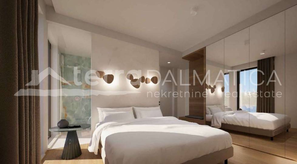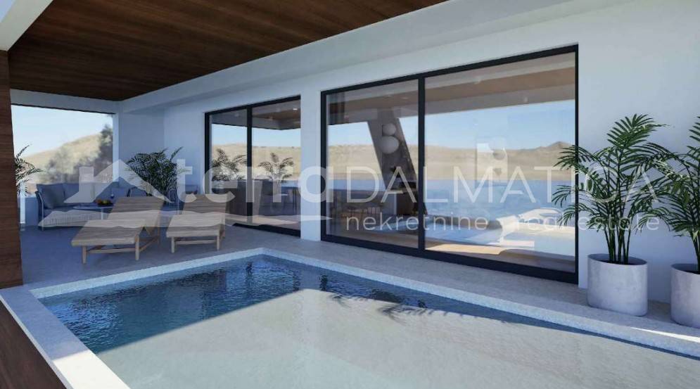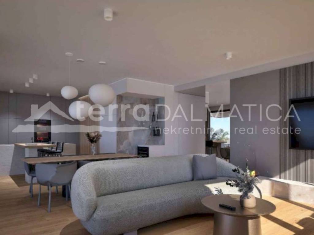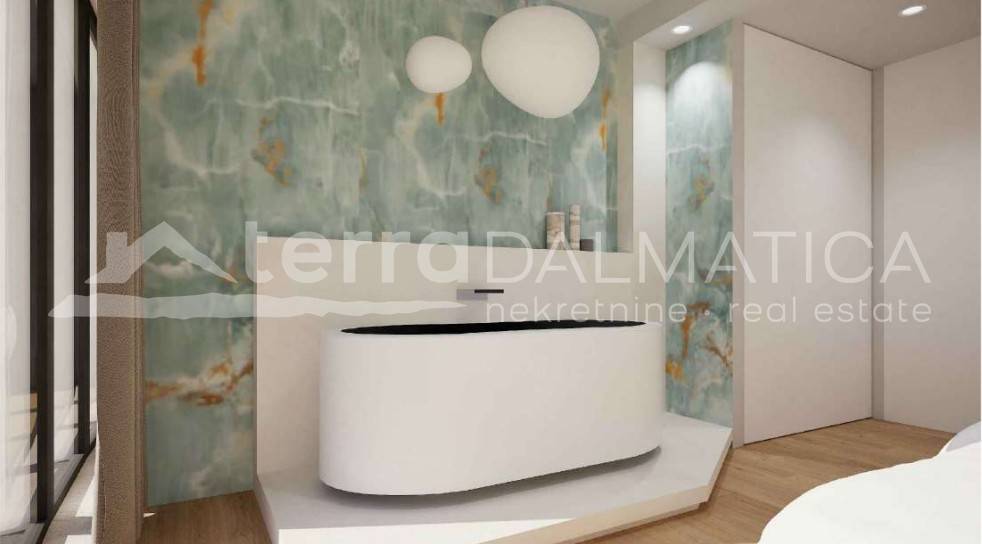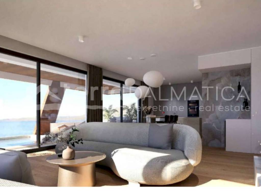 We present a top-class luxury apartment located on the first floor of a modern building in beautiful Sukošan, not far from Zadar. The apartment is located in the first row to the sea, offering you an unobstructed view of the Adriatic and a unique experience of the Mediterranean lifestyle. Upon entering the apartment, you will be greeted by an elegant entrance area that leads to a spacious, naturally light-filled kitchen, dining room and living room. This open area is perfect for relaxing, and leads out onto a spacious terrace. The terrace offers a mesmerizing view of the sea, and a private pool adds a special charm - an ideal place to relax with the sound of the waves and sunsets. The apartment has three spacious bedrooms, each equipped with its own bathroom and toilet. However, the real star of this space is the master bedroom, which includes a luxurious bathtub located inside the room, providing a sense of privacy and complete comfort. The master bedroom also comes with a dressing room, which further raises the standard of living. In addition to the main rooms, the apartment has an additional toilet and laundry room for maximum comfort. There is a storage room in the basement of the building, and the apartment also has two private parking spaces. The entire space is equipped with modern, top-quality equipment that combines elegance, functionality and luxury. Sukošan is a picturesque Dalmatian town known for its crystal clear sea, beautiful beaches and natural bays. Located in the immediate vicinity of Zadar, it offers the perfect combination of peace, privacy and proximity to urban life. It is also known for one of the largest marinas on the Adriatic – Marina Dalmacija, ideal for nautical enthusiasts. Promenades along the sea, excellent gastronomic offer and proximity to national parks such as Kornati, Paklenica and Plitvice Lakes make Sukošan a true gem of the Dalmatian coast. This apartment offers everything you could wish for – peace, privacy, luxurious interior and panoramic sea views. Take advantage of the opportunity and become the owner of a property that provides a sense of home in one of the most beautiful places on the Adriatic coast.