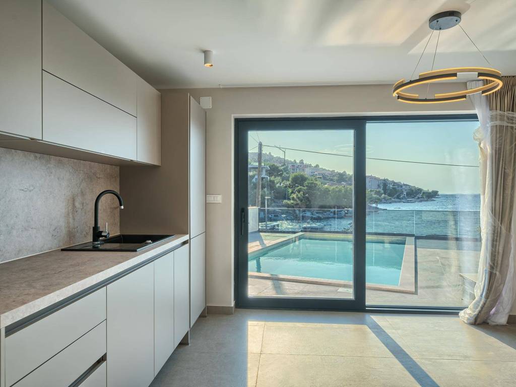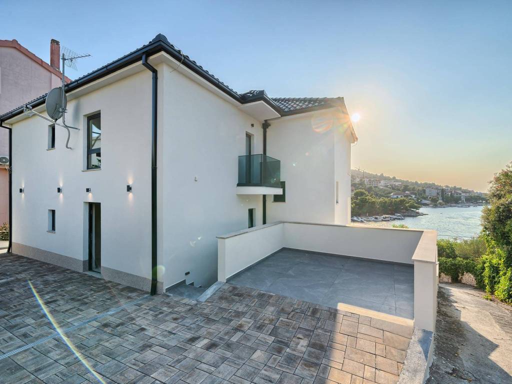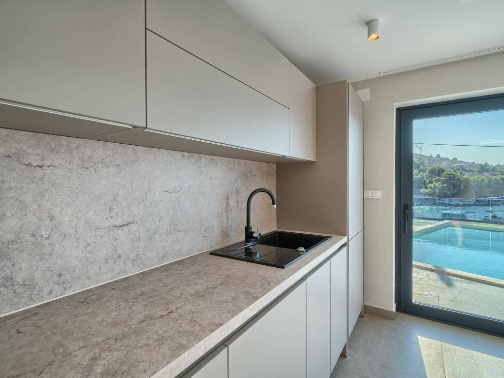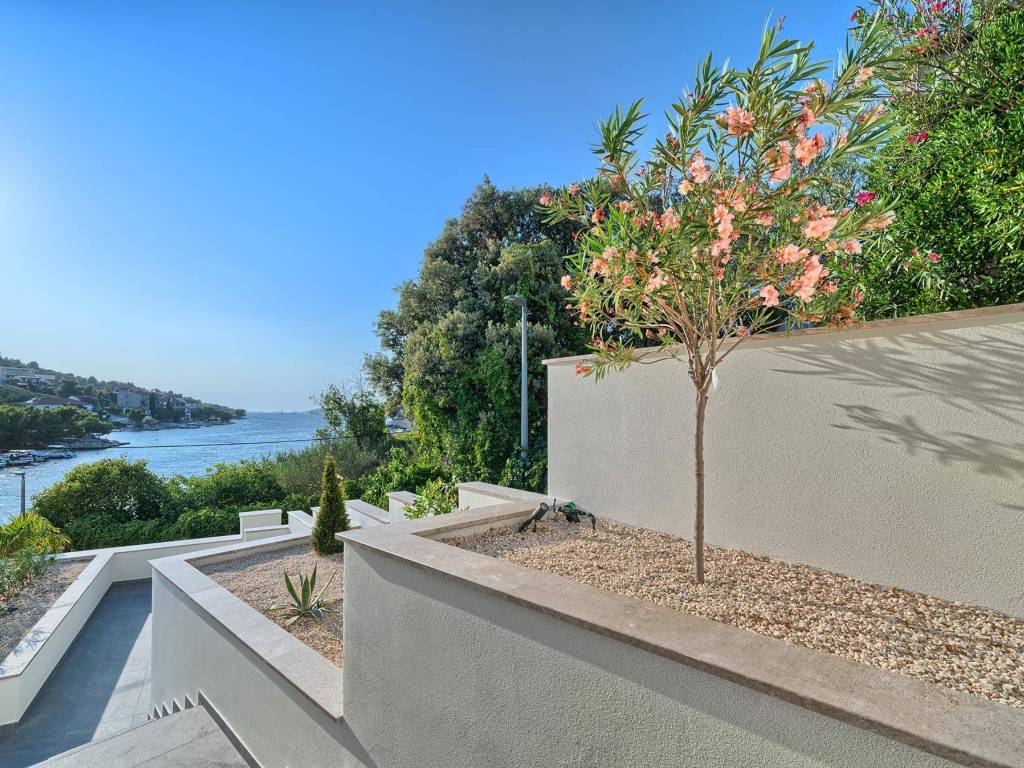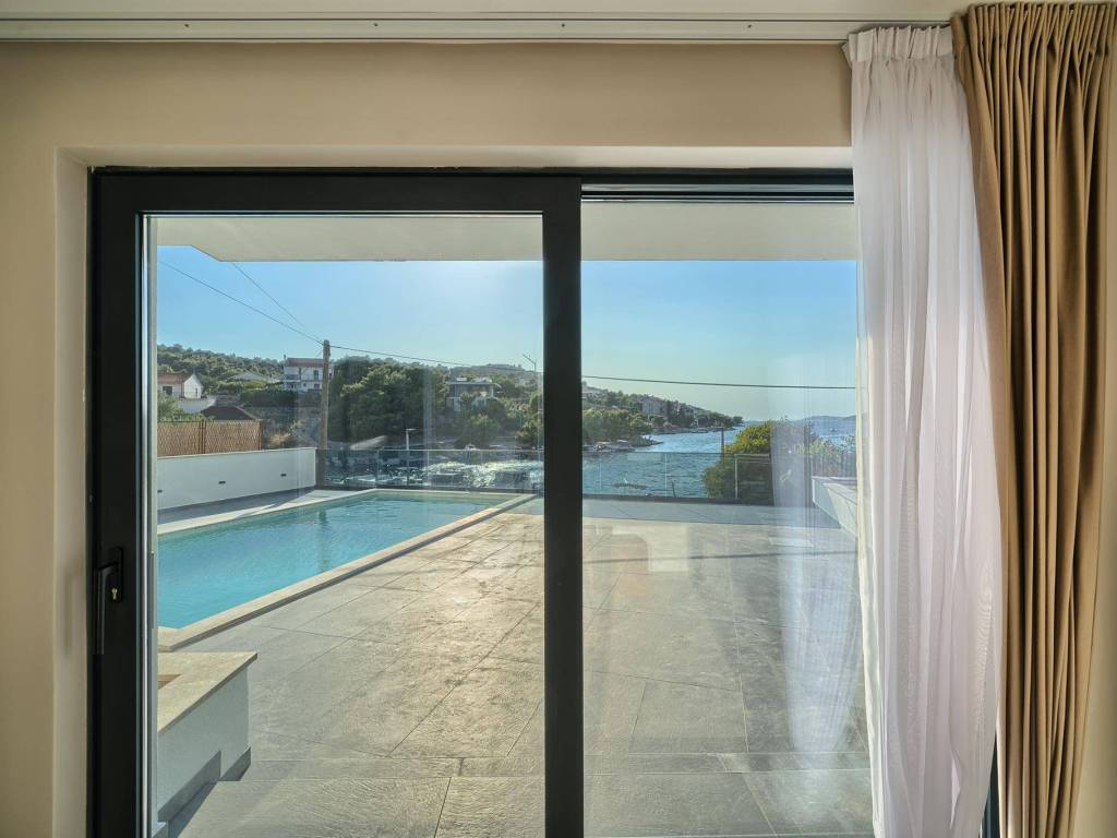 Not far from Rogoznica, there is a villa that is simply breathtaking with its elegance, thoughtful design and execution. Surrounded by Mediterranean greenery, the scent of pine trees and the proximity of the crystal clear sea, this villa represents the perfect combination of luxury, comfort and nature - the ideal choice for those looking for more than just a home. The villa is spread over three floors - ground floor, first and second floor - and offers everything you need for a comfortable and carefree stay. The ground floor has a storage room, a modern fitness room, an elegant bathroom and a kitchen, dining room and living room that radiate warmth. The ground floor also has a storage room for additional convenience, which is entered from the outside. The living room opens onto a covered terrace of 19 m² - the perfect place for morning coffee, evening gatherings or peaceful sunset watching. In front of the villa is a swimming pool surrounded by a sunbathing area, where summer days turn into a real oasis of relaxation. There is also an auxiliary building, which further increases functionality. The first floor of the villa is equally carefully designed. It contains a kitchen with a dining area, an elegant living room, a guest toilet, a hallway and a staircase leading to the upper floor. On the same floor there is a comfortable bedroom with its own bathroom, while the spacious 27 m² balcony offers a magical view of the surroundings, ideal for relaxing with a glass of wine and the sounds of nature. The second floor reveals even more luxury and privacy - there is a hallway that leads to three spacious bedrooms, each with its own modern bathroom. The bedroom also has a wardrobe. On the first floor there are two balconies, a smaller one and a larger one, which offer a panoramic view and create the perfect setting for evening enjoyment under the Dalmatian sky. The villa was designed with a special focus on top-notch craftsmanship - the highest quality materials were used, while every interior detail was carefully coordinated so that the space exudes warmth, elegance and refined luxury. The design is functional, but also aesthetically impressive - designed to provide maximum comfort, but also to exude style and personality. Located in a place known for its peace, untouched nature and traditional Dalmatian charm, the villa offers a rare opportunity to escape from everyday life. Rogoznica is a picturesque tourist resort with a rich gastronomic and cultural offer, known for its luxurious marina, promenades and crystal clear sea. This villa is not just a house - it is a home, an investment, a refuge and a summer story waiting to be told.