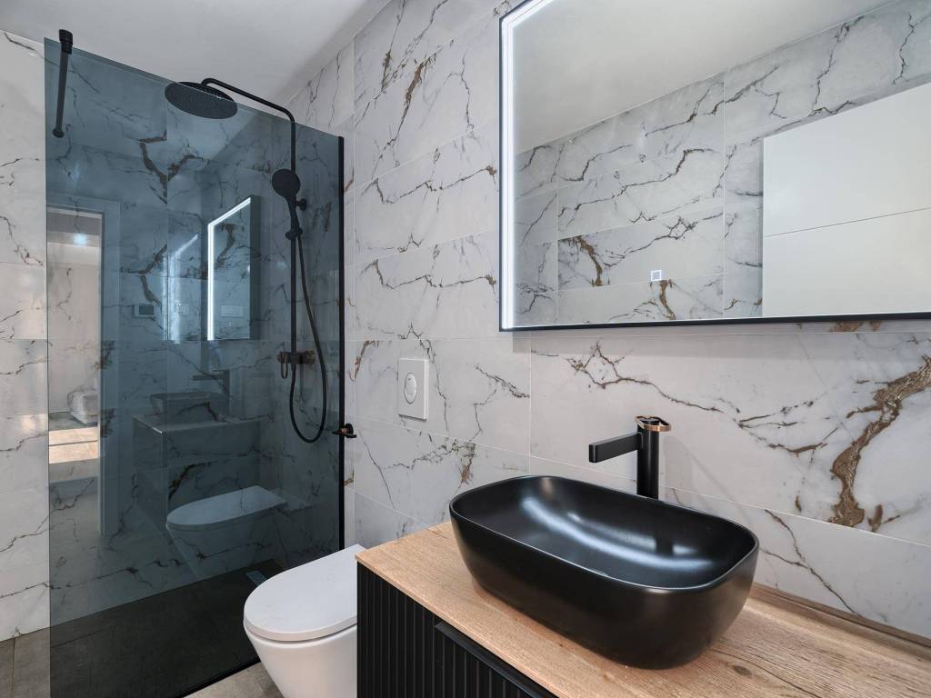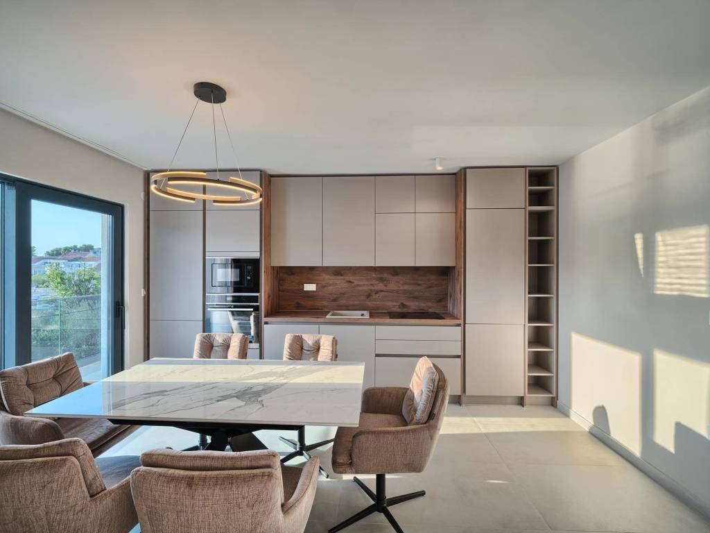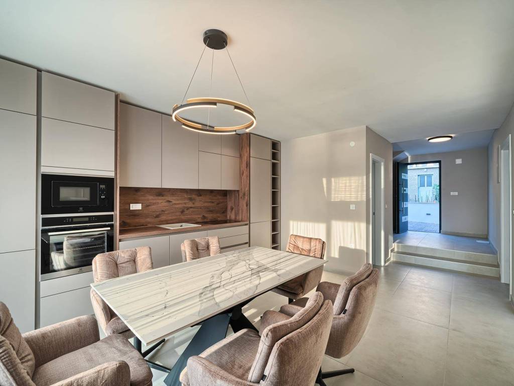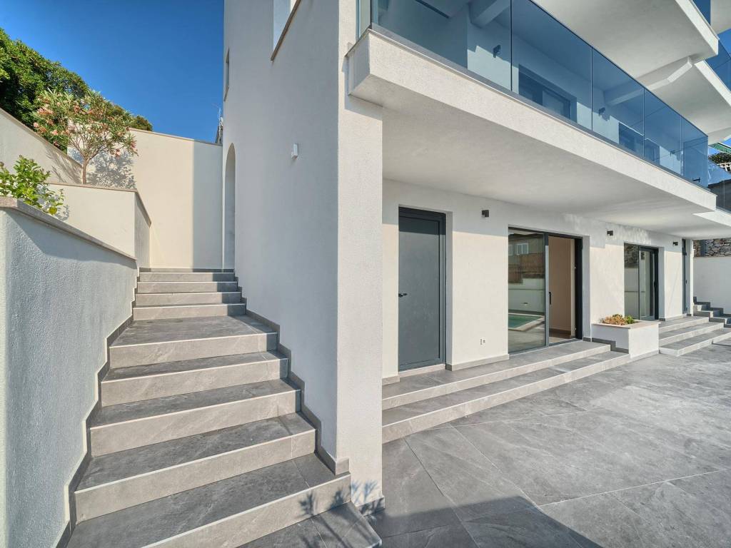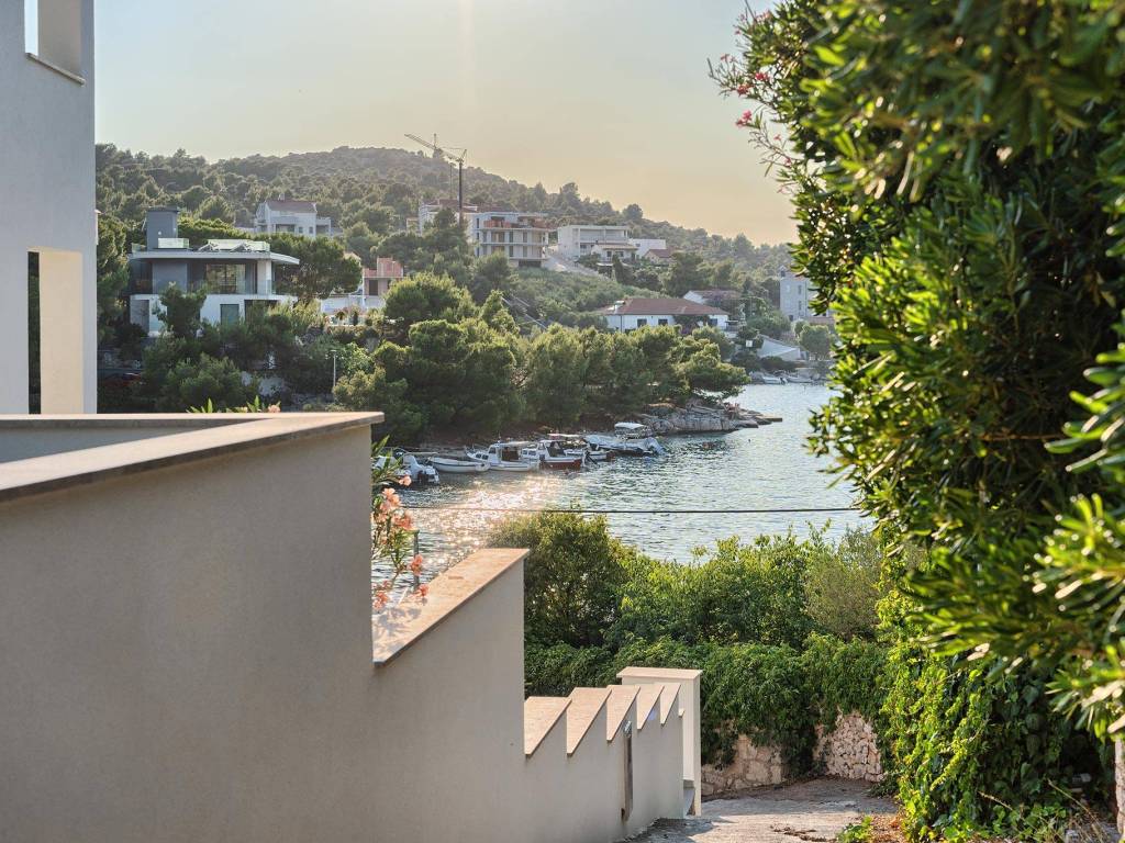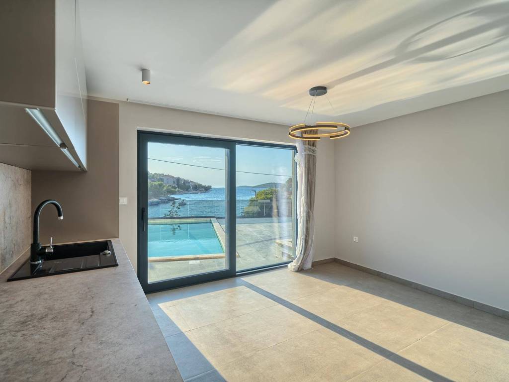 Not far from Rogoznica, there is a villa that is simply breathtaking with its elegance, thoughtful design and execution. Surrounded by Mediterranean greenery, the scent of pine trees and the proximity of the crystal clear sea, this villa represents the perfect combination of luxury, comfort and nature - the ideal choice for those looking for more than just a home. The villa is spread over three floors - ground floor, first and second floor - and offers everything you need for a comfortable and carefree stay. The ground floor has a storage room, a modern fitness room, an elegant bathroom and a kitchen, dining room and living room that radiate warmth. The ground floor also has a storage room for additional convenience, which is entered from the outside. The living room opens onto a covered terrace of 19 m² - the perfect place for morning coffee, evening gatherings or peaceful sunset watching. In front of the villa is a swimming pool surrounded by a sunbathing area, where summer days turn into a real oasis of relaxation. There is also an auxiliary building, which further increases functionality. The first floor of the villa is equally carefully designed. It contains a kitchen with a dining area, an elegant living room, a guest toilet, a hallway and a staircase leading to the upper floor. On the same floor there is a comfortable bedroom with its own bathroom, while the spacious 27 m² balcony offers a magical view of the surroundings, ideal for relaxing with a glass of wine and the sounds of nature. The second floor reveals even more luxury and privacy - there is a hallway that leads to three spacious bedrooms, each with its own modern bathroom. The bedroom also has a wardrobe. On the first floor there are two balconies, a smaller one and a larger one, which offer a panoramic view and create the perfect setting for evening enjoyment under the Dalmatian sky. The villa was designed with a special focus on top-notch craftsmanship - the highest quality materials were used, while every interior detail was carefully coordinated so that the space exudes warmth, elegance and refined luxury. The design is functional, but also aesthetically impressive - designed to provide maximum comfort, but also to exude style and personality. Located in a place known for its peace, untouched nature and traditional Dalmatian charm, the villa offers a rare opportunity to escape from everyday life. Rogoznica is a picturesque tourist resort with a rich gastronomic and cultural offer, known for its luxurious marina, promenades and crystal clear sea. This villa is not just a house - it is a home, an investment, a refuge and a summer story waiting to be told.
