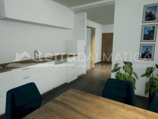 In a quiet part of Vodice, in a building with a total of nine apartments, an attractive ground floor apartment is for sale, ideal for family life, vacation or tourist rental. The apartment covers 58 m² of living space and has been carefully designed to provide maximum comfort and functionality. The interior of the apartment consists of a kitchen, dining room and living room, which form an open and airy unit, perfect for socializing and relaxing. In addition, the apartment has one bedroom and a bathroom. A special atmosphere is provided by a covered terrace of 10 m², which leads to a private garden of 50 m² - the perfect place to enjoy morning coffee or evening relaxation. The apartment is equipped with quality materials - ceramic tiles are installed in all rooms, except for the bedroom, while laminate flooring is installed in the bedroom. Underfloor heating is located in the living room and bathroom, which further increases comfort during the winter months. Air conditioners are installed in the living room and bedroom, while electric shutters allow easy control of lighting and privacy. The apartment also has TV/SAT connections in the living room and bedroom, as well as an electric car charger connection in the storage room. The property is currently under construction, with completion scheduled for spring 2026. Vodice is one of the most popular summer resorts on the Adriatic, known for its beautiful beaches, crystal clear sea and rich tourist offer. It is located near Šibenik, and in the immediate vicinity there are two national parks - Krka and Kornati. In addition to natural beauty, Vodice offers a variety of facilities for all generations - restaurants, cafes, long promenades along the sea, bike paths and numerous cultural and entertainment events during the summer. This apartment is an excellent opportunity for anyone who wants a quiet location with a private garden, yet close to the sea and the center of events. Renders were used in the ad. If you are interested in the property, please feel free to contact us.