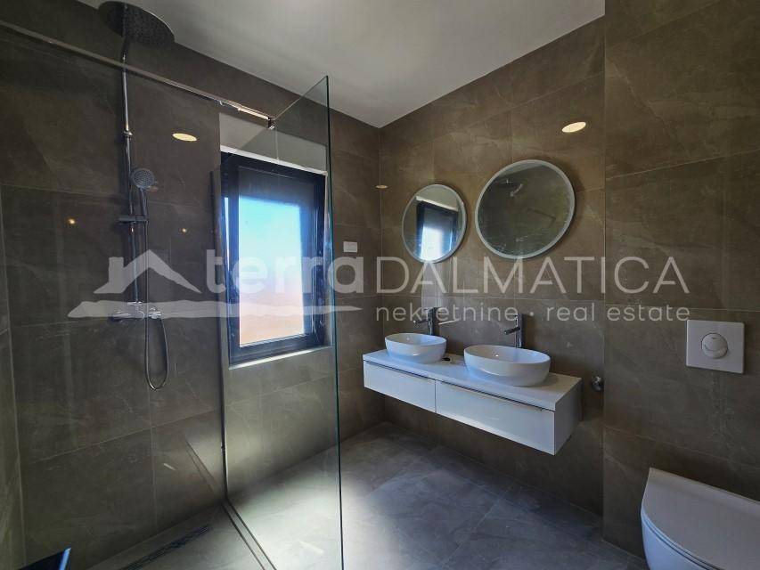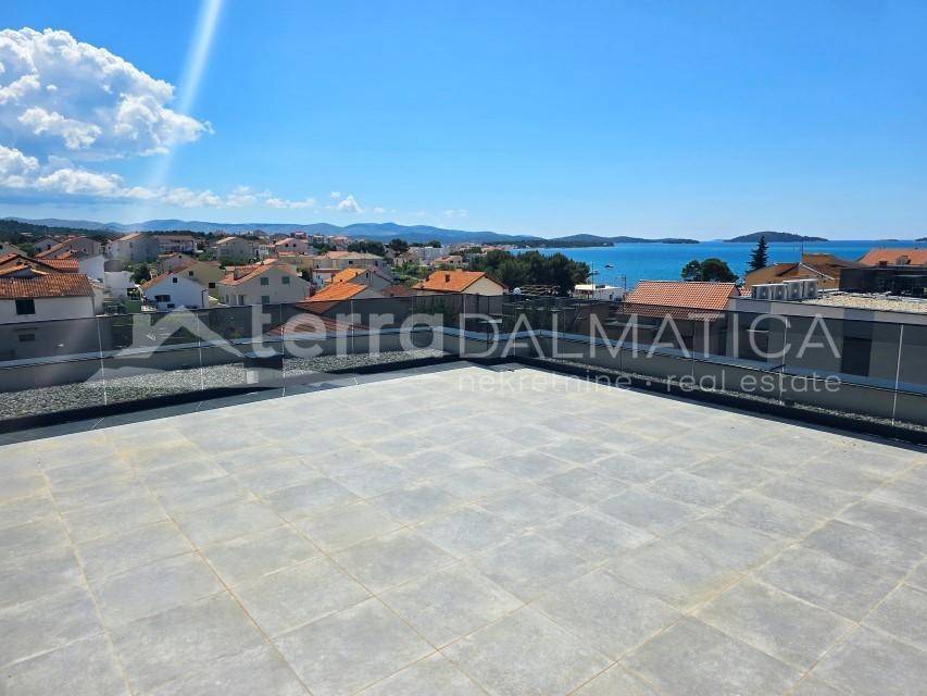 For sale is a spacious duplex apartment located on the first and second floors of a modern residential building in a quiet area near Šibenik. With a total area of 140 m², this apartment offers an ideal combination of comfort, modern equipment and views of the sea and nature. On the first floor, which occupies 50 m², there is a living room, kitchen with dining room, hallway and guest toilet, as well as two balconies. On the second floor, measuring 55 m², there are three comfortable bedrooms, two modern bathrooms with electric underfloor heating, a hallway and a staircase connecting the floors, as well as an additional balcony. The apartment is equipped with aluminum joinery, electric roller shutters, and air conditioning is provided by as many as four indoor air conditioning units. The price also includes one parking space in the building's garage. The special feature of this apartment is a large roof terrace of 110 m² that offers views of the sea, nature and surroundings - a perfect place to relax, socialize or enjoy the sunset. The apartment is located near Šibenik, a beautiful Dalmatian city rich in history, enchanting architecture and top-notch gastronomic offer. The city is surrounded by natural beauty, including two national parks – Krka and Kornati, numerous beaches, hidden coves and crystal clear sea. Šibenik offers a blend of cultural heritage, modern infrastructure and a peaceful Mediterranean lifestyle, making this property a perfect choice for living, vacationing or as an investment for tourist rentals.