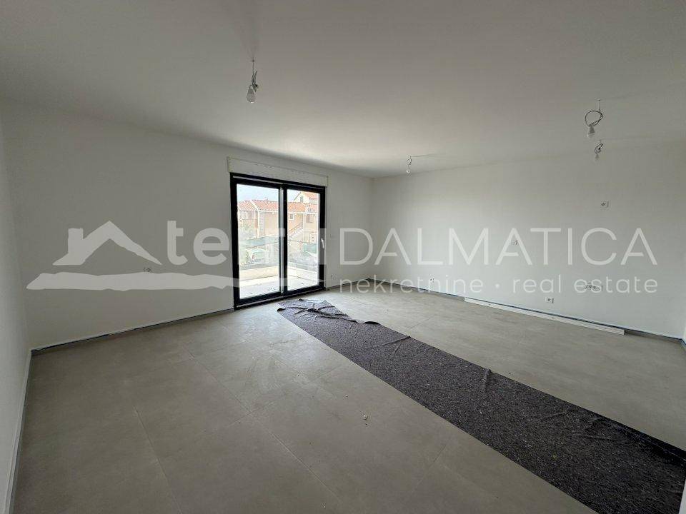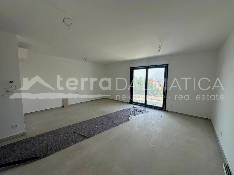 A modern and functional apartment is for sale located in a newer residential building with an elevator on the island of Čiovo, near Trogir. The total area of the apartment is 90 m², of which 71 m² is living space. The apartment consists of an entrance hall, two bedrooms, two bathrooms, a spacious living room connected to the kitchen and dining room, and two balconies that offer a pleasant space for relaxation. In addition to the living area, the apartment also has a storage room and a laundry room, which further contributes to the functionality and organization of the space. The apartment is equipped with a modern air conditioning system - air conditioners are located in each room and can be remotely controlled via a mobile application. Triple-layered glass is installed, which ensures excellent thermal and sound insulation, and additional comfort is provided by electric shutters, mosquito nets and underfloor heating in the kitchen, living room and bathrooms. High-quality construction, modern equipment and energy-efficient solutions make this apartment ideal for year-round living or as an investment for tourist rental. The building is located in an excellent location, just a few minutes walk from beautiful pebble beaches and clear sea, and all the necessary amenities for everyday life are available nearby - shops, restaurants, school, kindergarten, marina, as well as seaside promenades. Trogir, a city under UNESCO protection, is only a ten-minute drive away, while Split Airport and the city of Split are less than half an hour away. VAT is included in the price. This property offers the perfect balance between peaceful island life and proximity to all important urban amenities and represents an excellent opportunity for those looking for quality, comfort and an attractive location on the Adriatic coast.