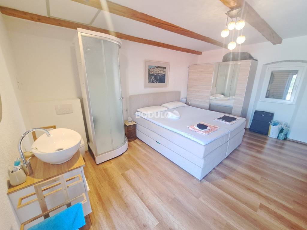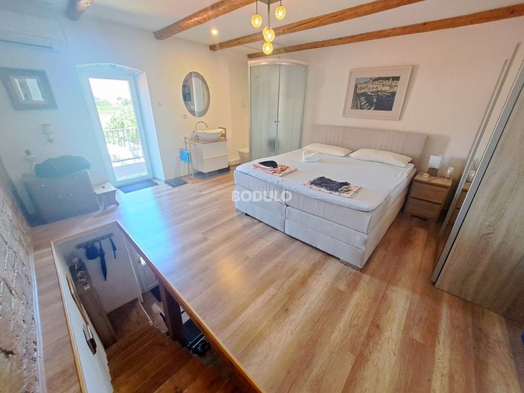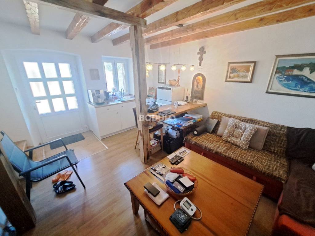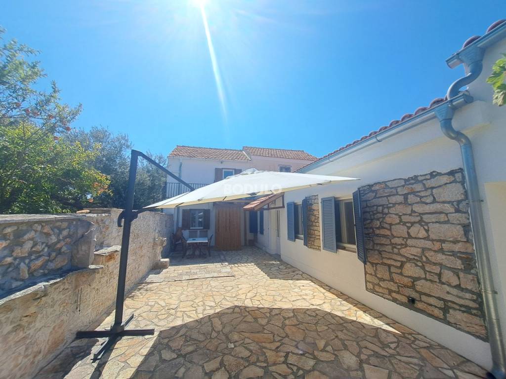 In the beautiful village Muline on the island of Ugljan, which is located on the northwestern part of the island, a house with a total area of 120 m2 is for sale. It was built according to traditional Dalmatian construction - in a row, completely renovated and properly maintained. It consists of two apartments with separate entrances. The first apartment is located on the ground floor and consists of a kitchen with a dining room, two bedrooms, a bathroom and a storage room. The second apartment is located on the ground floor and on the first floor and consists of a kitchen with a living room and a dining room on the ground floor and one bedroom with a bathroom and a terrace on the first floor. The fenced courtyard with a beautiful stone on the floor has an area of approximately 120 m2. There is also a concrete parking area of approximately 110 m2. It is located on the edge of the construction zone, surrounded by smaller family houses and Mediterranean vegetation. It is distanced only 600 meters from the sea and the center of the village Muline. The house is fully furnished and ready to move in.