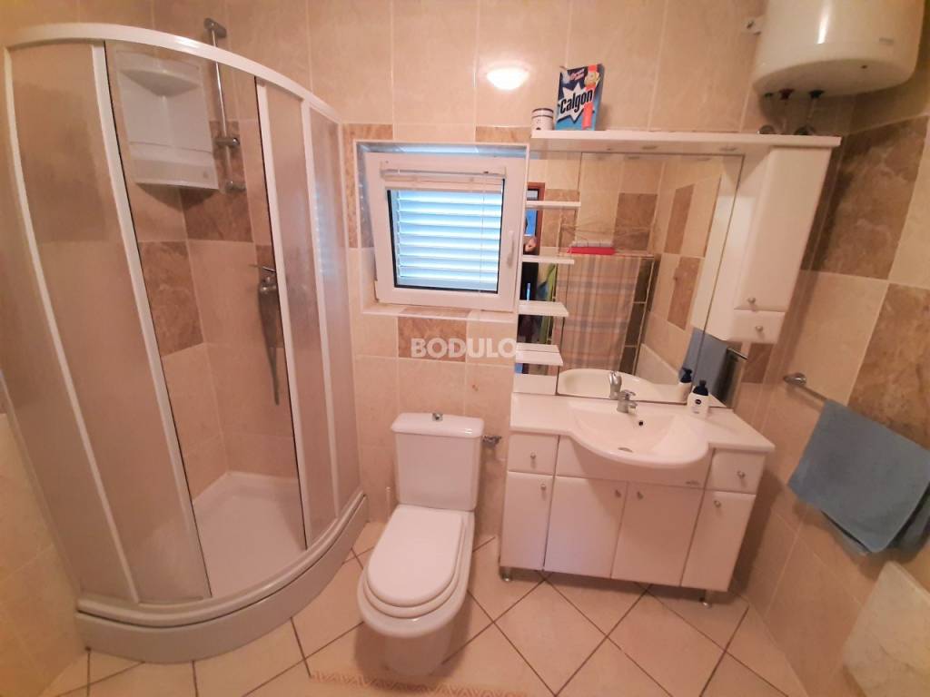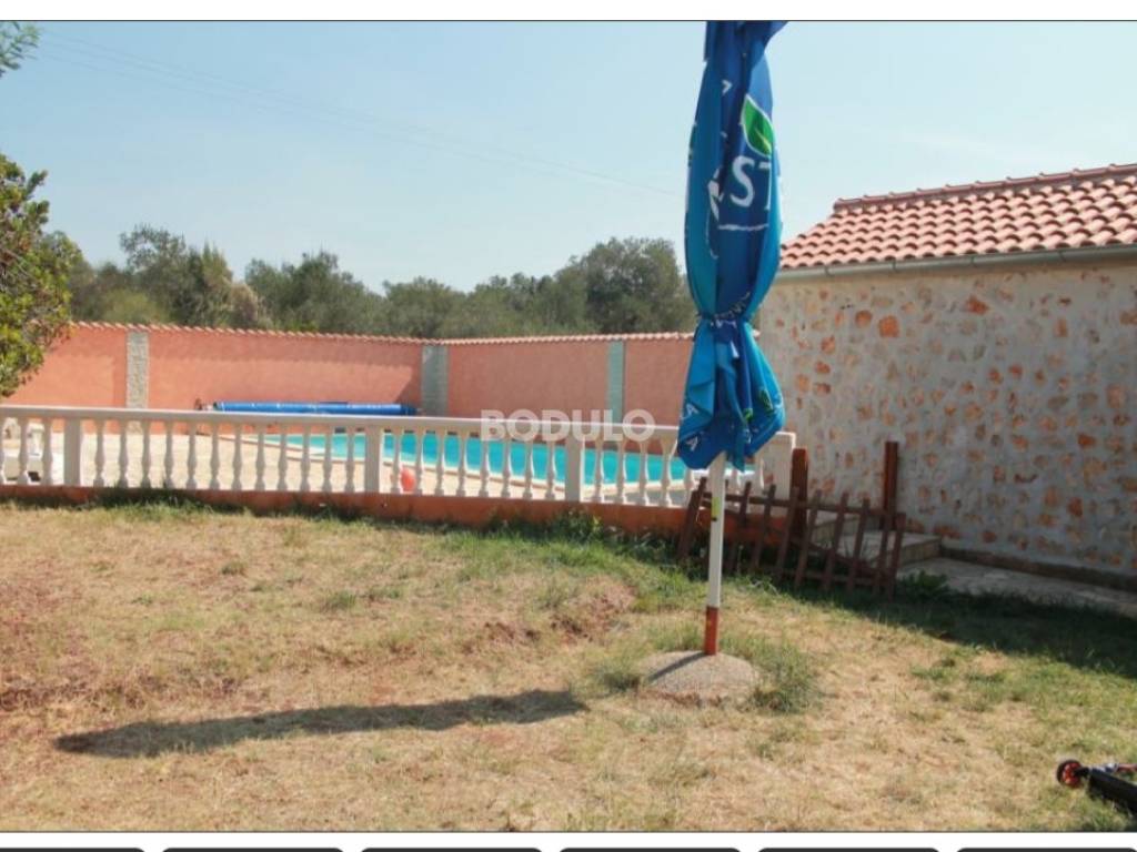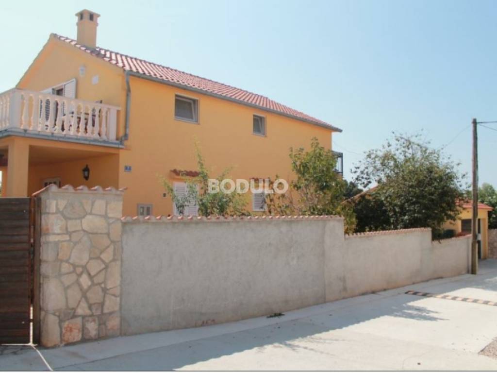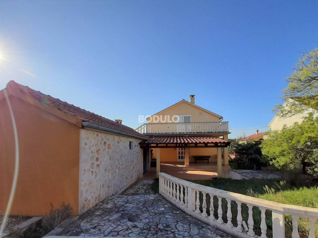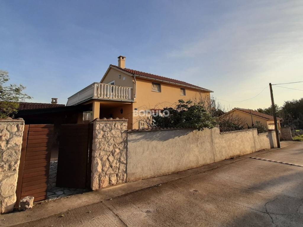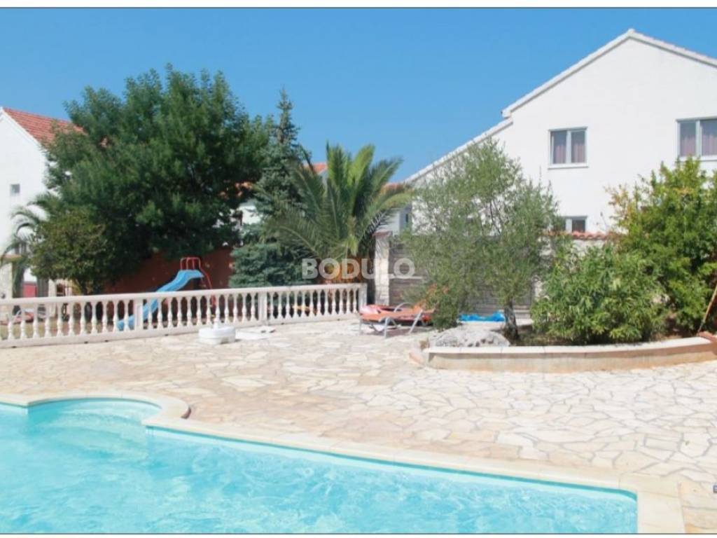 In the quiet part of place Ugljan, district Fortoština, for sale is a family house of 266 m2 with a swimming pool, an auxiliary building and a garage. It consists of two apartments, each with an area of 70 m2, each consisting of three bedrooms, kitchen with living room and dining room, bathroom and terrace. Each room has air conditioning. The house is fully equipped and furnished, it has PVC joinery with mosquito nets and shutters. Fully fenced garden of 433 m2 with a swimming pool of 43 m2, an auxiliary building of 37 m2 in which there is a grill and a kitchen is ideal for enjoying with family and friends. The total area of the plot is 681 m2, and the property is 900 m from the sea and the beach, and about 1 km from the center of Ugljan, where there are shops, restaurants, post office, butcher, doctor, playground, etc.