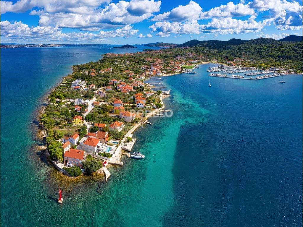 This building plot of 1241 m2 is located in a beautiful and quiet area of Sutomišćica, surrounded by olive groves, untouched nature and only a few family houses in the neighborhood. It is positioned on an elevated area, so the plot offers a beautiful view of the sea towards Zadar, the surrounding area and Velebit. The location where the plot is located is connected to both the center of Sutomišćica and the town of Poljana. The width along the road is approximately 30 m, and the special feature of this plot is that it also has an access road on the opposite side, which allows for more diverse design and construction. The plot is approximately 200 m from the sea and the beach. For this building plot it has been issued a final building permit for a residential building with two residential units, each with a swimming pool.