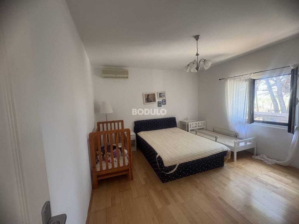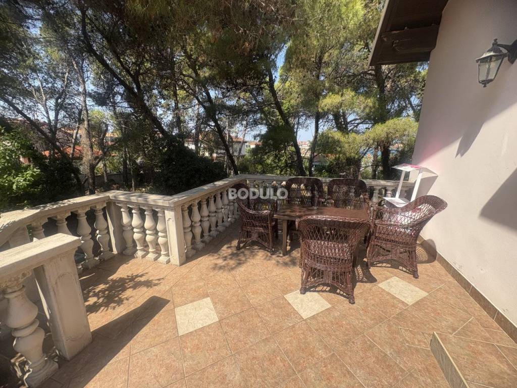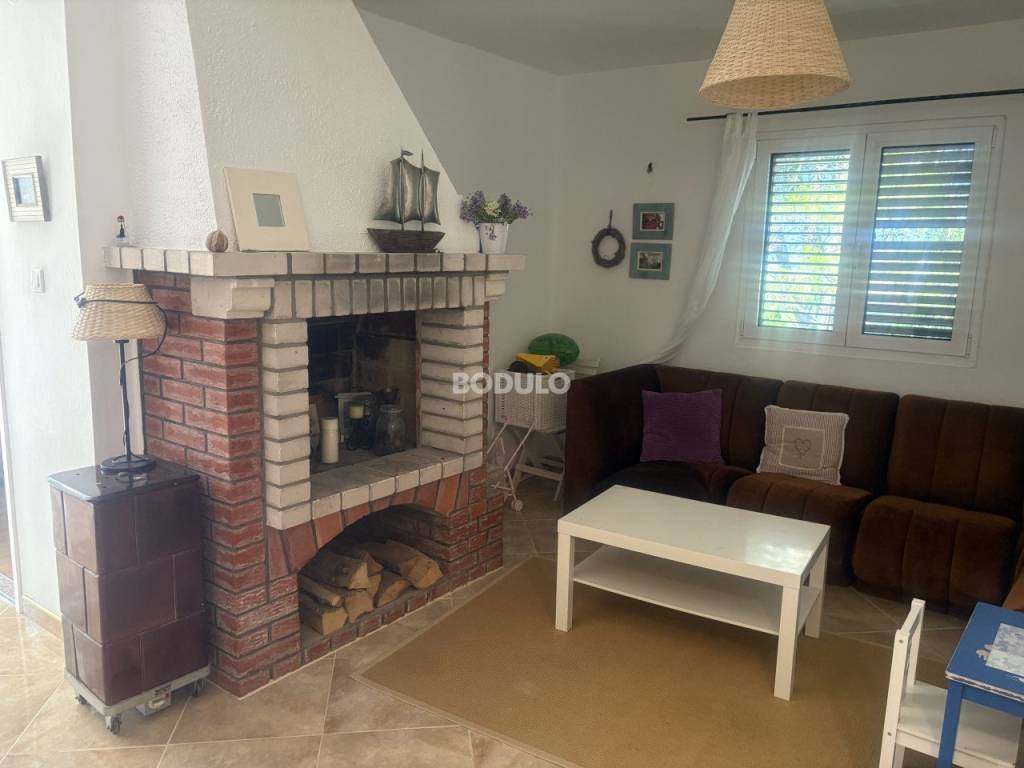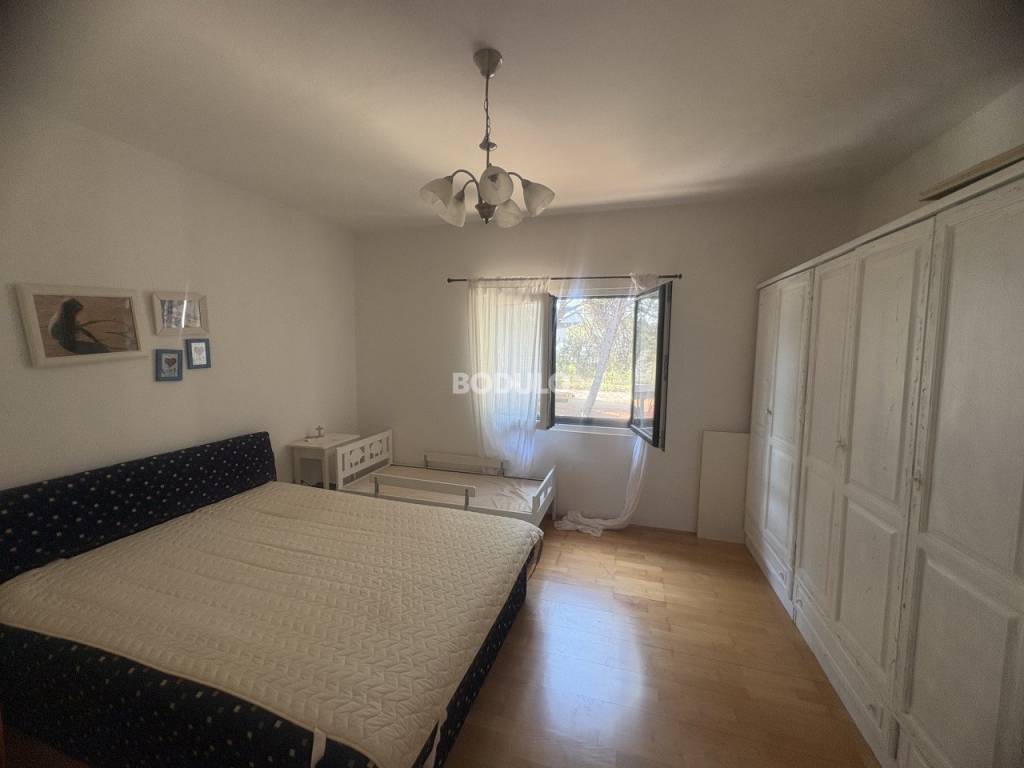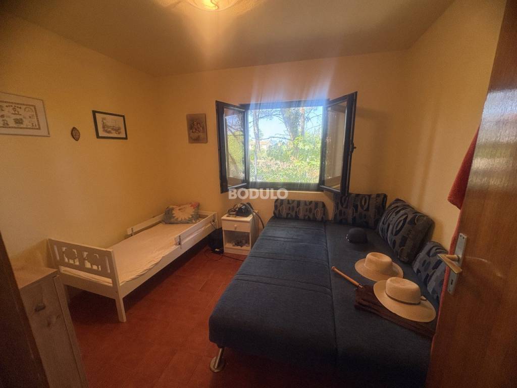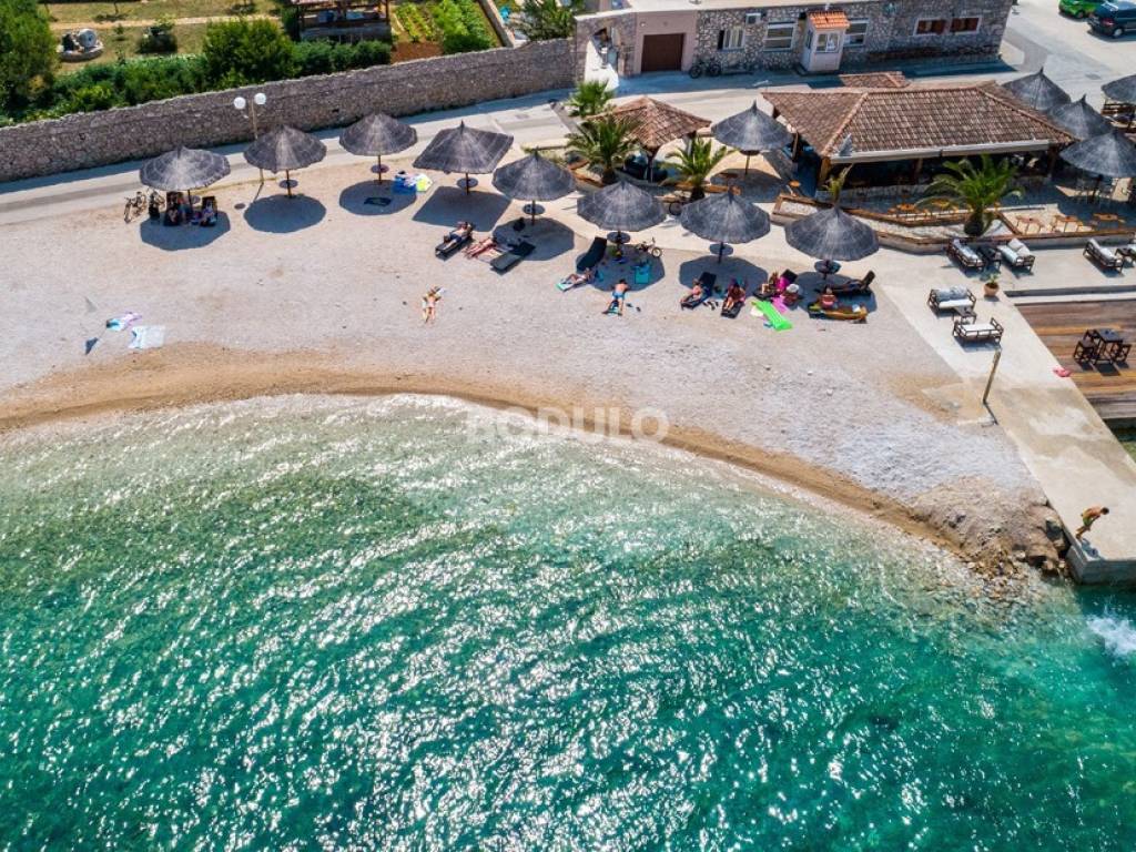InUgljan, in the beautiful hamlet of Čeprljanda, just about 80 meters from the sea, there is a house that at first glance offers a sense of peace, spaciousness, and a true Mediterranean way of life. Surrounded by a large garden, this property is situated on a plot with a total area of 1,405 m,and extends over a basement, ground floor, and first floor, providing ample space for family living, guests, andrelaxation. The ground floor features a kitchen, a large bedroom, two additional rooms, a bathroom, a separate guest toilet, a storage room, and a terrace oriented to the northeast, ideal for peaceful mornings and pleasant shade. From the house, there is direct access to the yard, which opens on the southern and southwestern sides into a spacious, shaded garden surrounded by tall pine trees. Here, the scents of the sea and pine create an authentic Mediterranean atmosphere, enhanced by a covered terrace, an outdoor barbecue, a childrens play area, sunbathing space, and plenty of room for outdoor living throughout the day. In addition to the municipal water supply, the house also has a cistern for water storage, and a garage is located at the far end of the yard, further emphasizing the functionality and self-sufficiency of this property. The spacious terraces invite you to enjoy warm evenings, while the outdoor barbecue and covered area with a large table provide the perfect setting for family gatherings, dining, and relaxing in the shade, as well as romantic evenings under the starry sky. The first floor consists of a living room with a fireplace that adds a special charm to the space, an area designated for a kitchen, a bathroom, and two bedrooms, each with its own balcony offering views of the deep blue sea. There is also a large terrace from which you can enjoy views of the garden and the pine treetops, while to the left, through the tree canopy, the sea view opens up. The combination of a stone façade on the ground floor, warm colors, and rich vegetation surrounding the house creates the feeling of a home that is subtly connected with nature, making this property an ideal place for family life, relaxation, or a summer retreat by the sea.