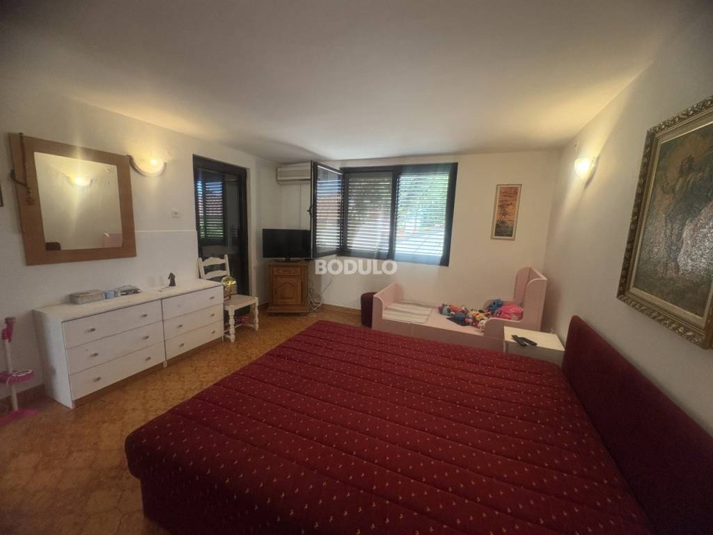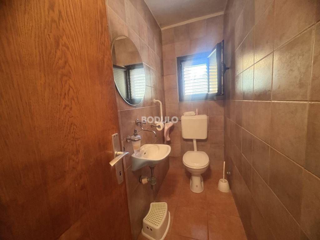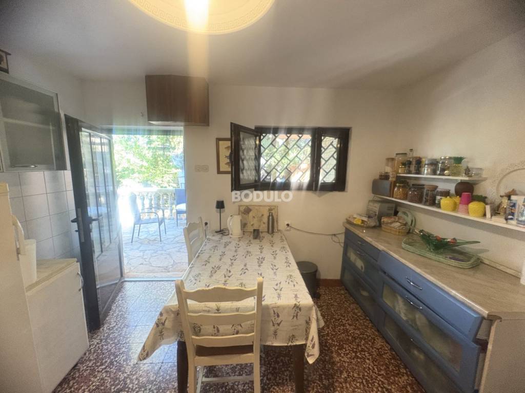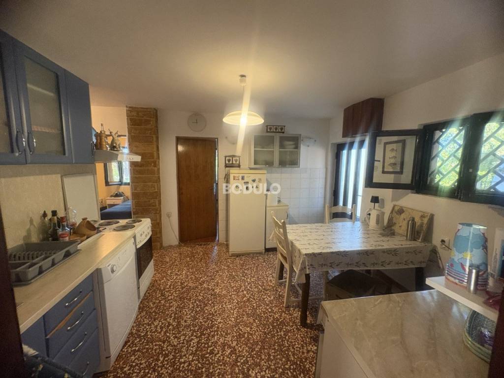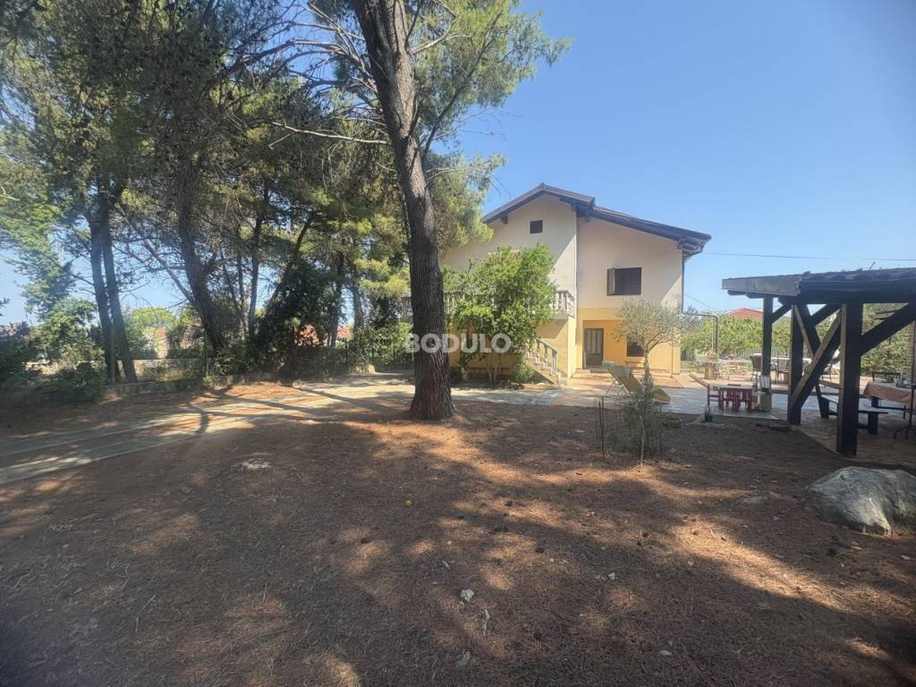 InUgljan, in the beautiful hamlet of Čeprljanda, just about 80 meters from the sea, there is a house that at first glance offers a sense of peace, spaciousness, and a true Mediterranean way of life. Surrounded by a large garden, this property is situated on a plot with a total area of 1,405 m,and extends over a basement, ground floor, and first floor, providing ample space for family living, guests, andrelaxation. The ground floor features a kitchen, a large bedroom, two additional rooms, a bathroom, a separate guest toilet, a storage room, and a terrace oriented to the northeast, ideal for peaceful mornings and pleasant shade. From the house, there is direct access to the yard, which opens on the southern and southwestern sides into a spacious, shaded garden surrounded by tall pine trees. Here, the scents of the sea and pine create an authentic Mediterranean atmosphere, enhanced by a covered terrace, an outdoor barbecue, a childrens play area, sunbathing space, and plenty of room for outdoor living throughout the day. In addition to the municipal water supply, the house also has a cistern for water storage, and a garage is located at the far end of the yard, further emphasizing the functionality and self-sufficiency of this property. The spacious terraces invite you to enjoy warm evenings, while the outdoor barbecue and covered area with a large table provide the perfect setting for family gatherings, dining, and relaxing in the shade, as well as romantic evenings under the starry sky. The first floor consists of a living room with a fireplace that adds a special charm to the space, an area designated for a kitchen, a bathroom, and two bedrooms, each with its own balcony offering views of the deep blue sea. There is also a large terrace from which you can enjoy views of the garden and the pine treetops, while to the left, through the tree canopy, the sea view opens up. The combination of a stone façade on the ground floor, warm colors, and rich vegetation surrounding the house creates the feeling of a home that is subtly connected with nature, making this property an ideal place for family life, relaxation, or a summer retreat by the sea.