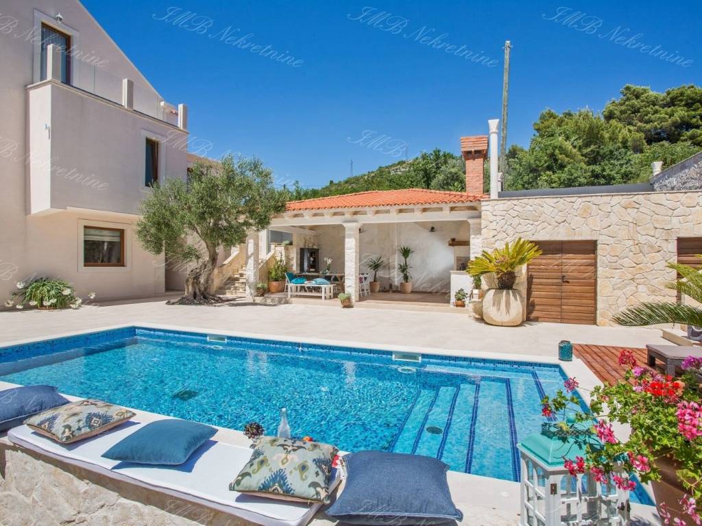 CALL FOR PRICE. Stone villa with pooland beautiful sea views Attractive location near Dubrovnik Villaspreads over 3 floors with a total area of approximately270 m2 Spacious land of 562 m2 Ground floor:spacious living room with dining area, kitchen and fireplace, entrance hall, bathroom with sauna, toilet, spacious covered terrace 1st floor:2 x smaller bedroom, 3 x larger bedroom with bathroom and exit to the terrace overlooking the sea 2nd floor: Master room / apartment with spacious living area, kitchenette, bedroom, bathroom and terrace Swimming pool Sun terrace Covered terrace Summer kitchen with barbecue Laundry Basement storage Machine room 2 parking spaces Spacious garden - cascading terraces and beautifully landscaped gardens with Mediterranean plants South orientation Beautiful relaxing ambience with lots of greenery in the surroundings Excellent position near the sea and beaches Well-established rental business - a holiday home with a capacity of 14 people Suitable for housing, vacation or tourist rental