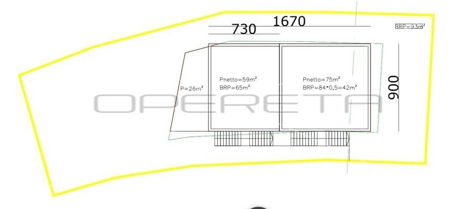 Na zemljištu je predviđena urbana vila sa 4 stana, ukupne površine 480m2 BRP. U projektu je i tehnicki podrum koji nije uračunat u BRP. Projekt je moguće mijenjati i prilagođavati u toku izgradnje, po pravilima struke.