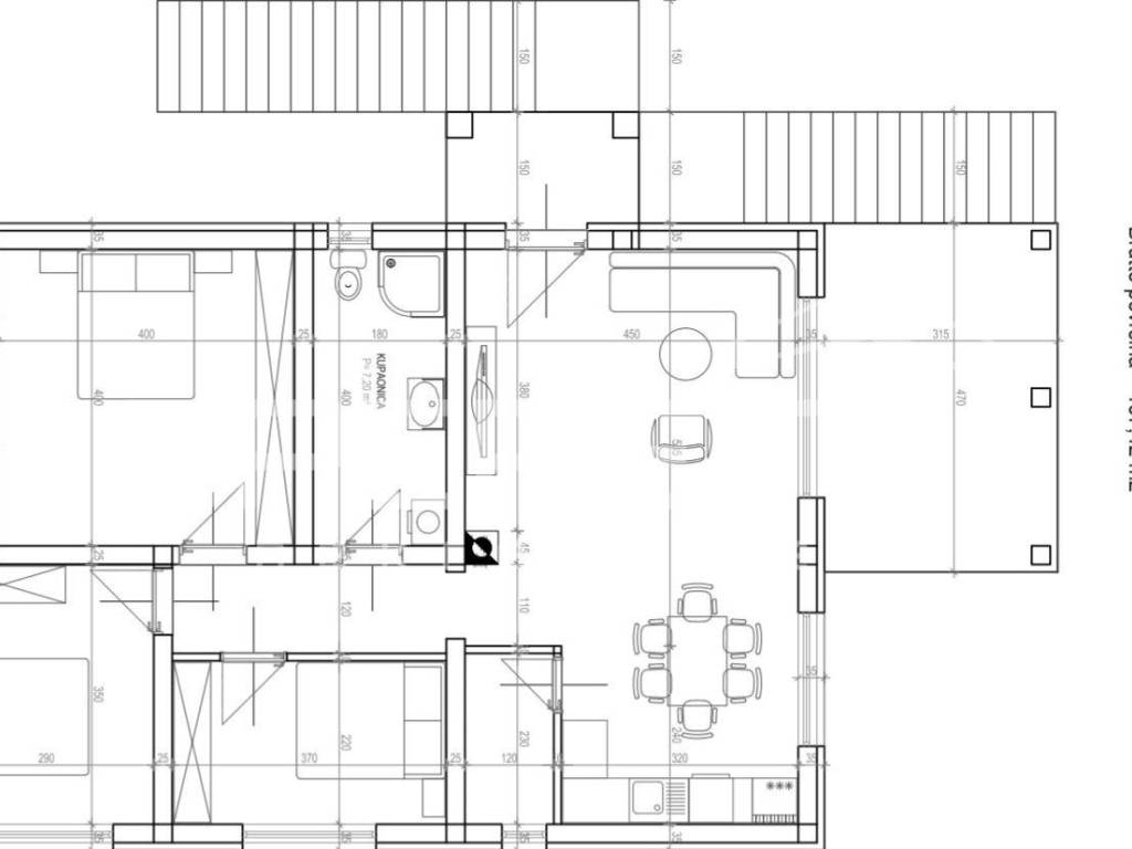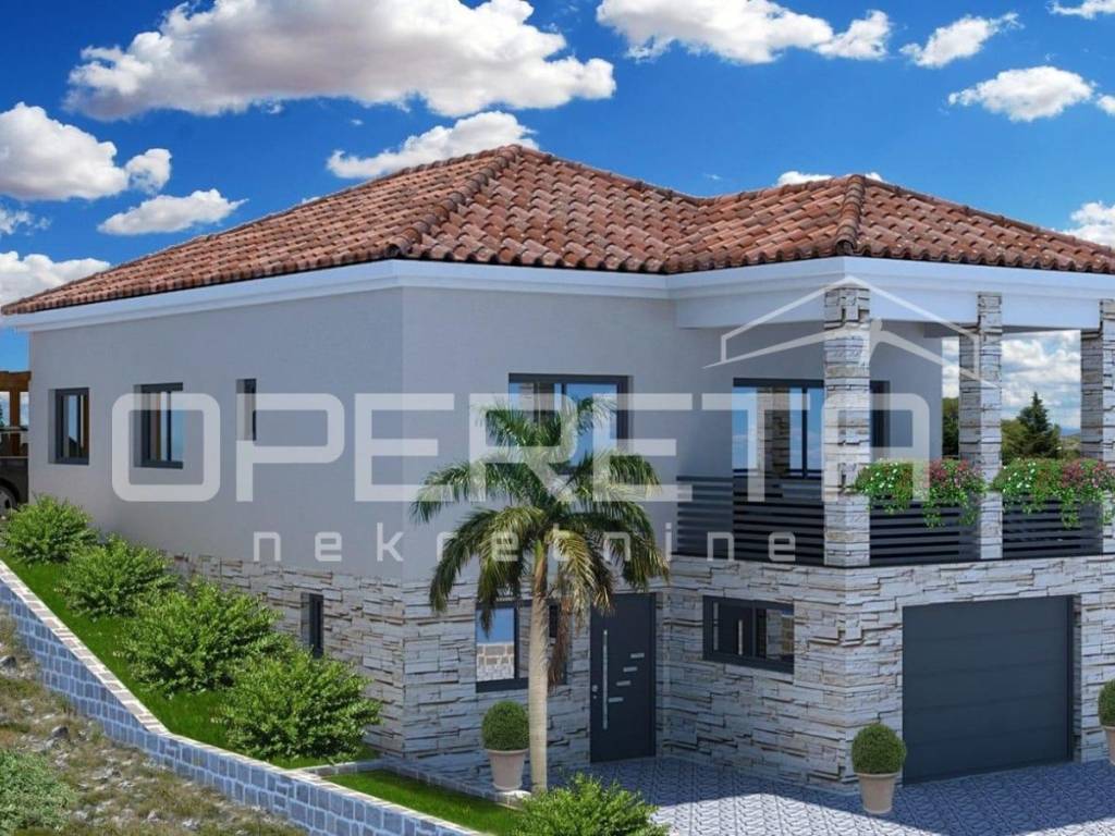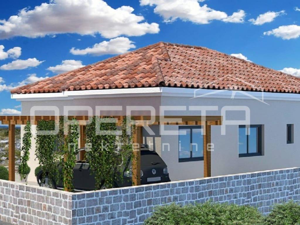 On the ground floor of the house there is a living space with as many as 3 bedrooms, a hallway, a bathroom, a storage room, an "open space" living room, a kitchen and a dining room, and a covered terrace with a panoramic view of Prokljan and the surrounding nature.