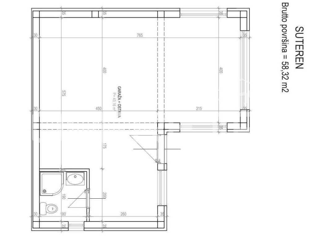 A garage with a cellar and a bathroom in the basement is planned, with a net usable area of 43 m2.