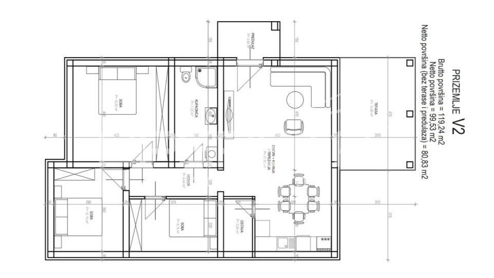 The NKP of the ground floor according to the project is 99.53 m2, and the project can be adjusted according to the wishes and needs of the future investor.