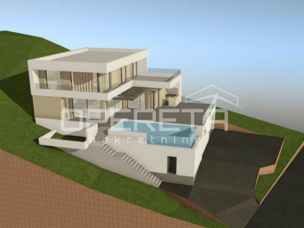 The land comes with a valid building permit for a modern residential building with an outdoor swimming pool, with a basement, ground floor and one floor.