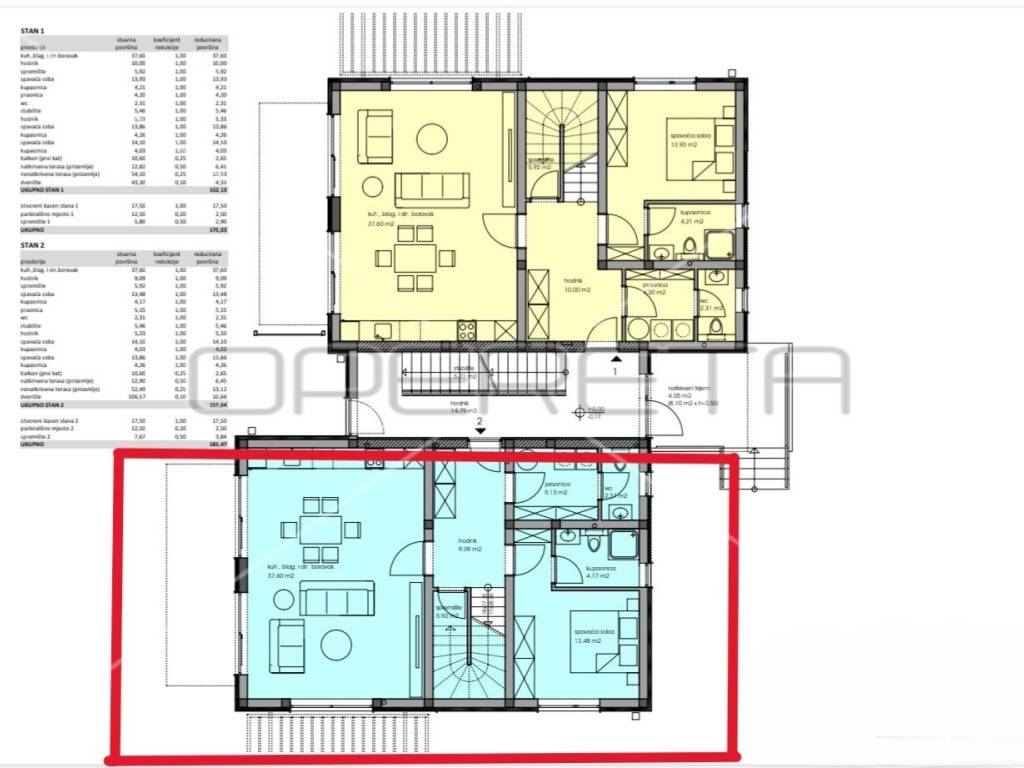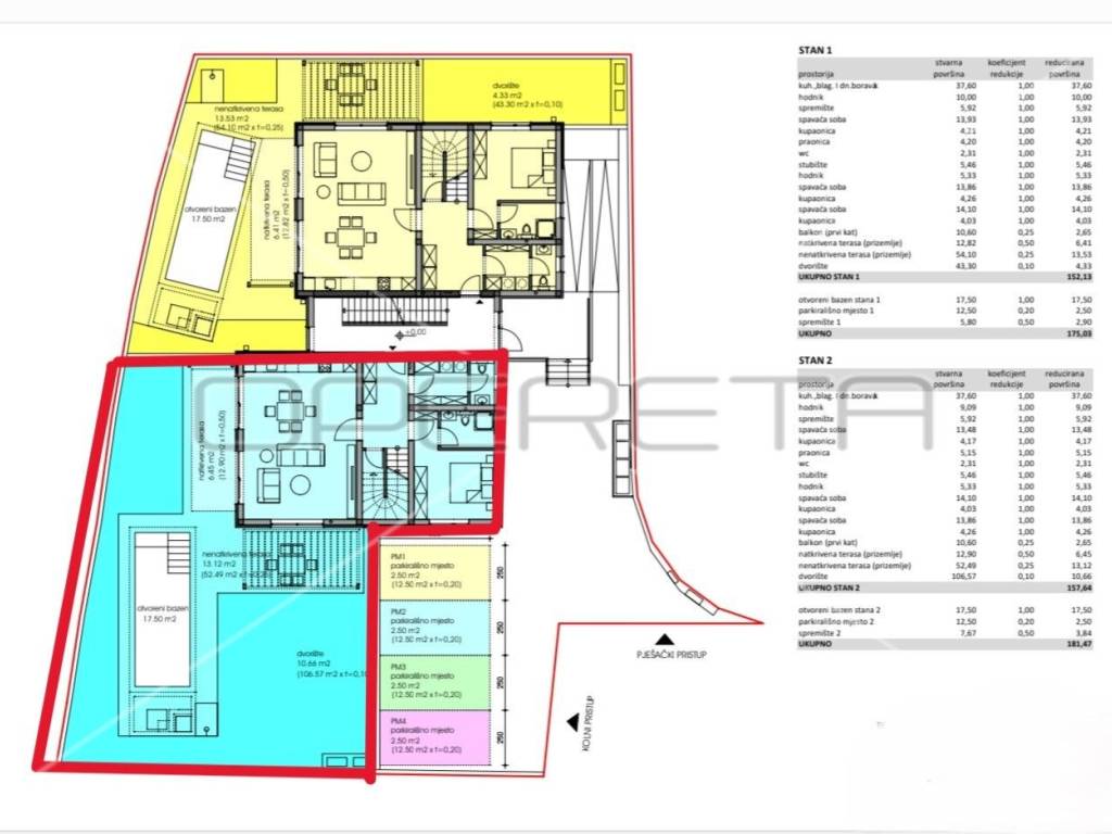 A two-story apartment S2 with a total area of 157.64m2 with a swimming pool and a beautiful view of the sea is for sale.