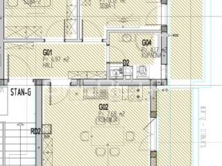 Prodaje se stan (zatvorenog prostora 56,80m2) novije gradnje u "Vilama Gundulić" koji se sastoji od ulaznog hodnika, kuhinje s blagovaonicom, dnevnog boravka s izlazom na natkrivenu terasu površine 8,06m2(obračunski 4,03m2), dvije spavaće sobe, jedna soba ima izlaz na nenatkrivenu terasu površine 8,34m2 (obračunski 2,08m2) te kupaonice.