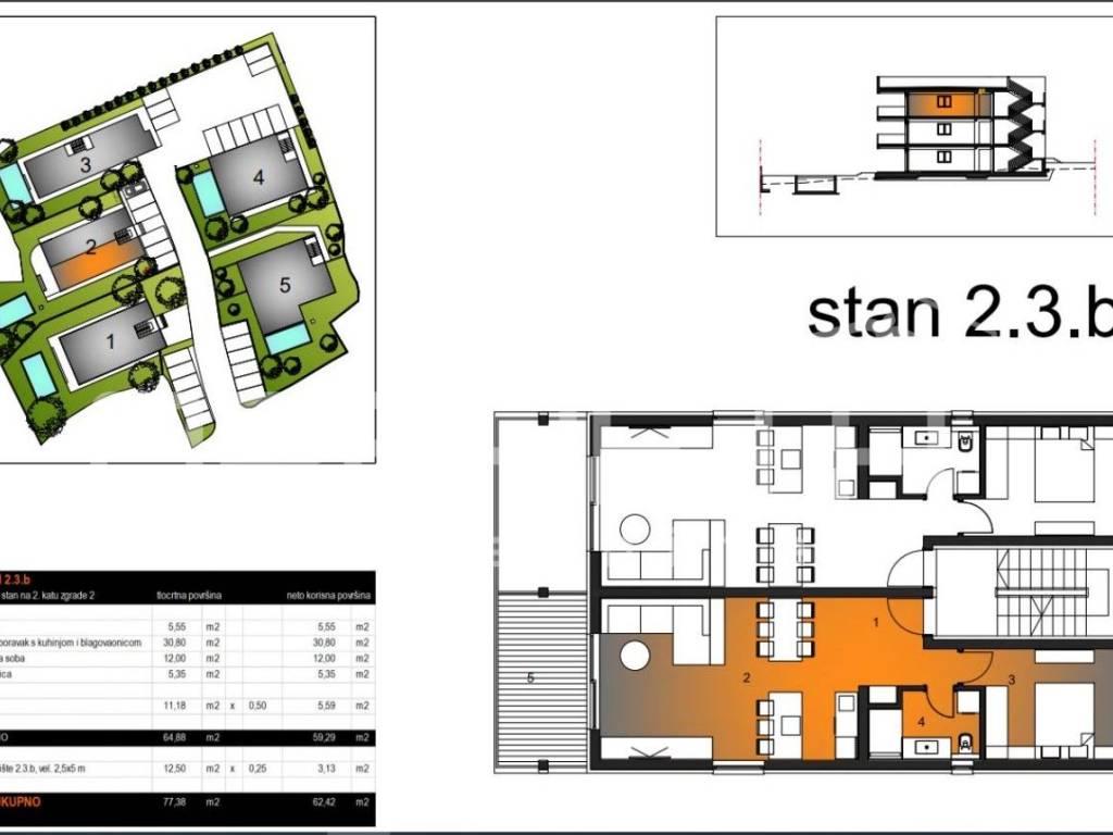 This apartment 2.3b is located on the third level, i.e., the second floor of Villa 2.