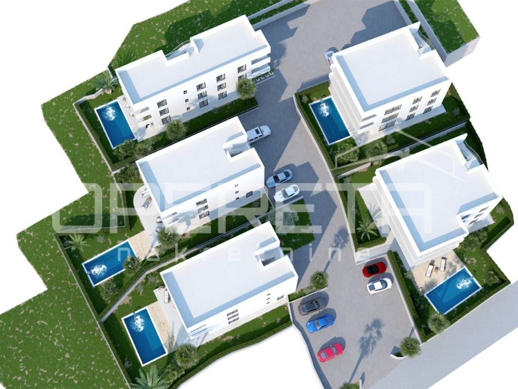 In Okrug Gornji, on the island of Čiovo, a complex of several urban villas is under construction. Each villa has three floors.