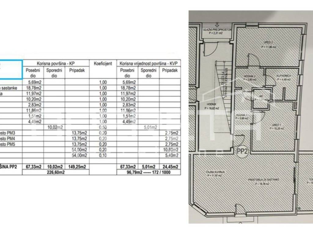 The total usable area, including all associated parts, is 227 m, while the net living area of the apartment is 97 m.