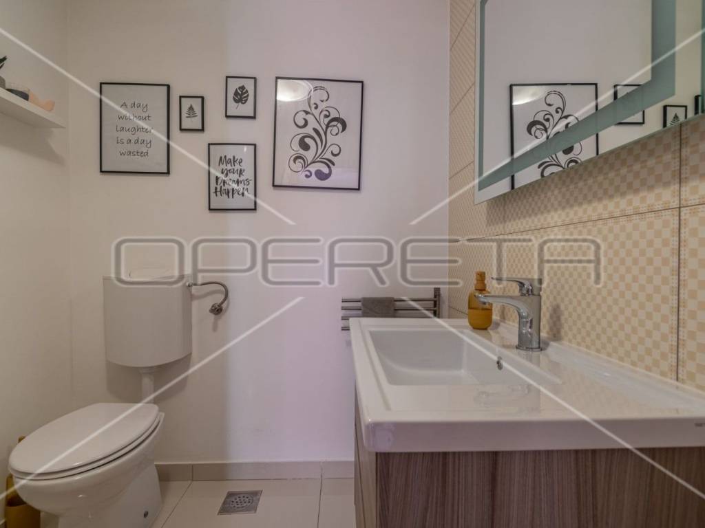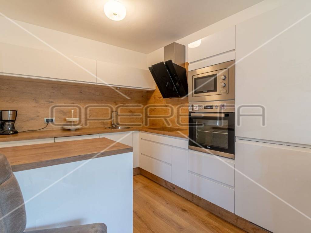 The apartment is modernly decorated and furnished. In front of the apartment is a nice garden of approx. 35 m2 with two olive trees, part lawn and part paved.