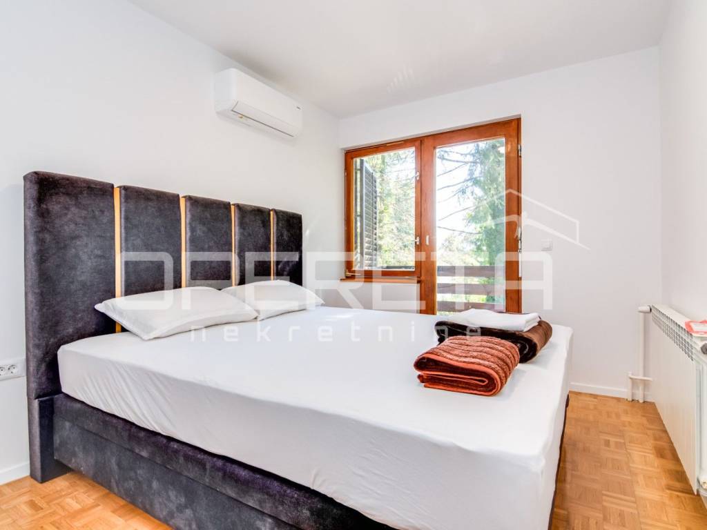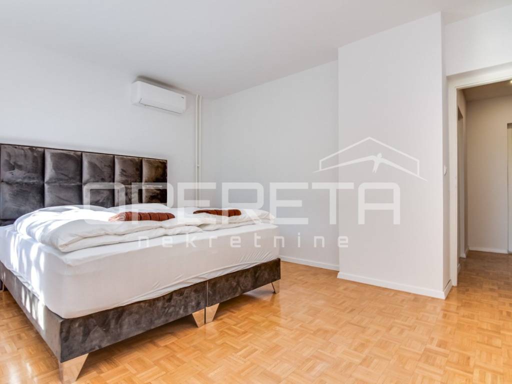 Tri prostrane spavaće sobe, od kojih svaka ima izlaz na balkone, i jednom kupaonicom uređenom s naglaskom na funkcionalnost i stil.