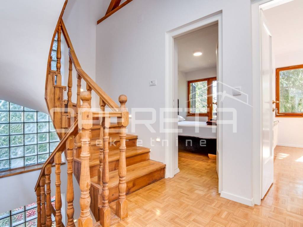 Unutarnja stolarija je originalna hrastovina, stručno brušena i lakirana.