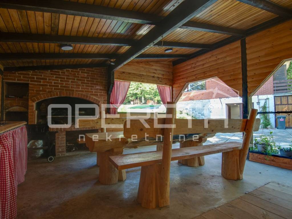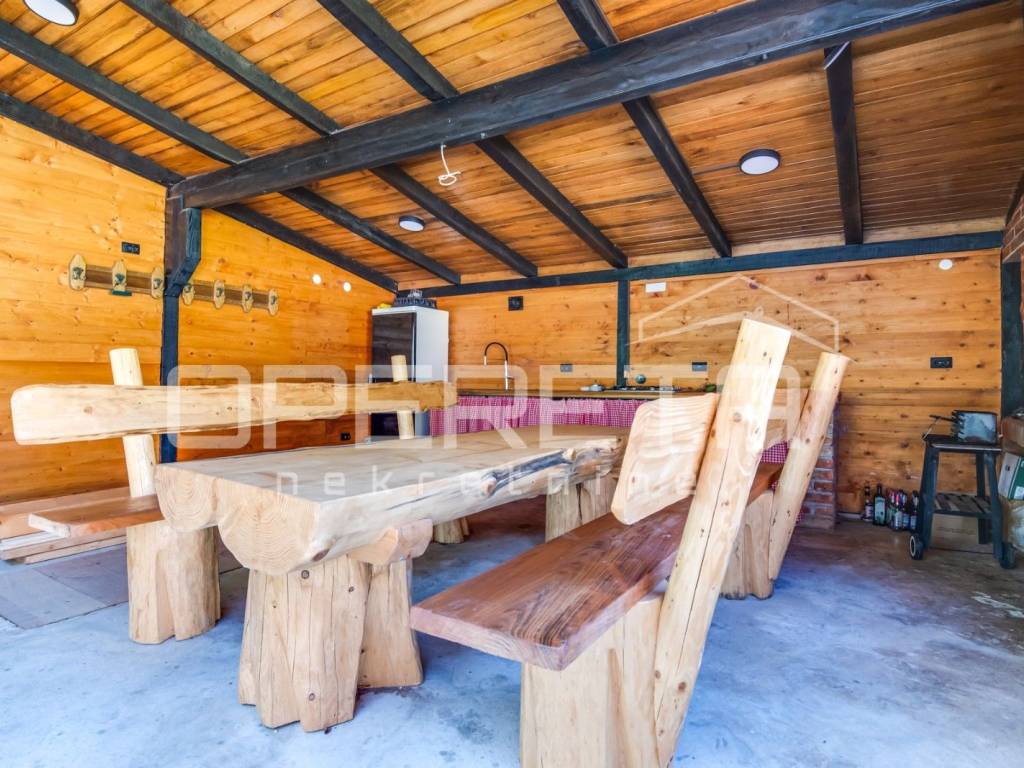 - natkrivena dvorišna sjenica (30m2) u vidu ljetne kuhinje s pečenjarom i prostorom za druženje,