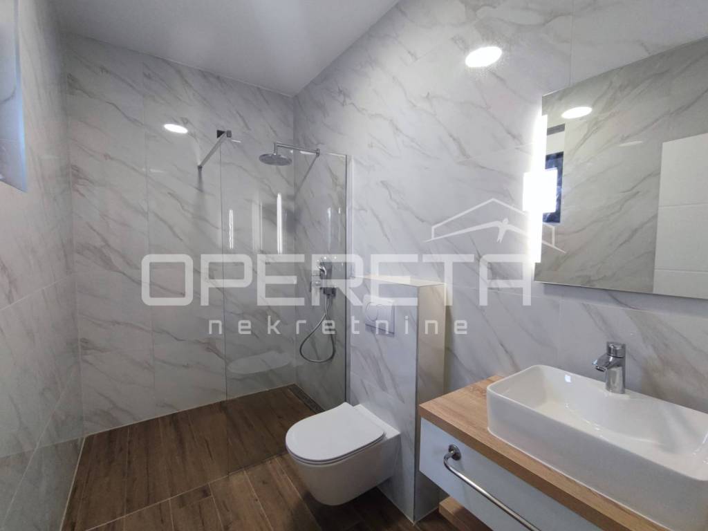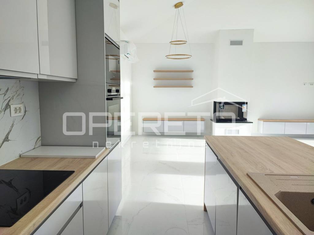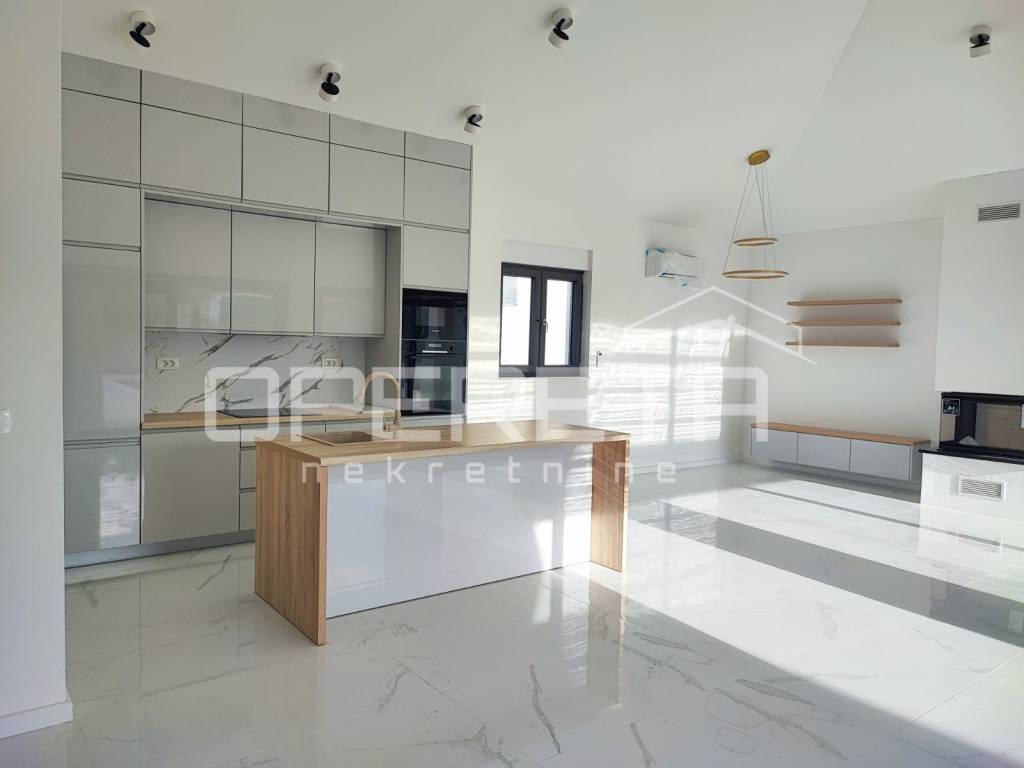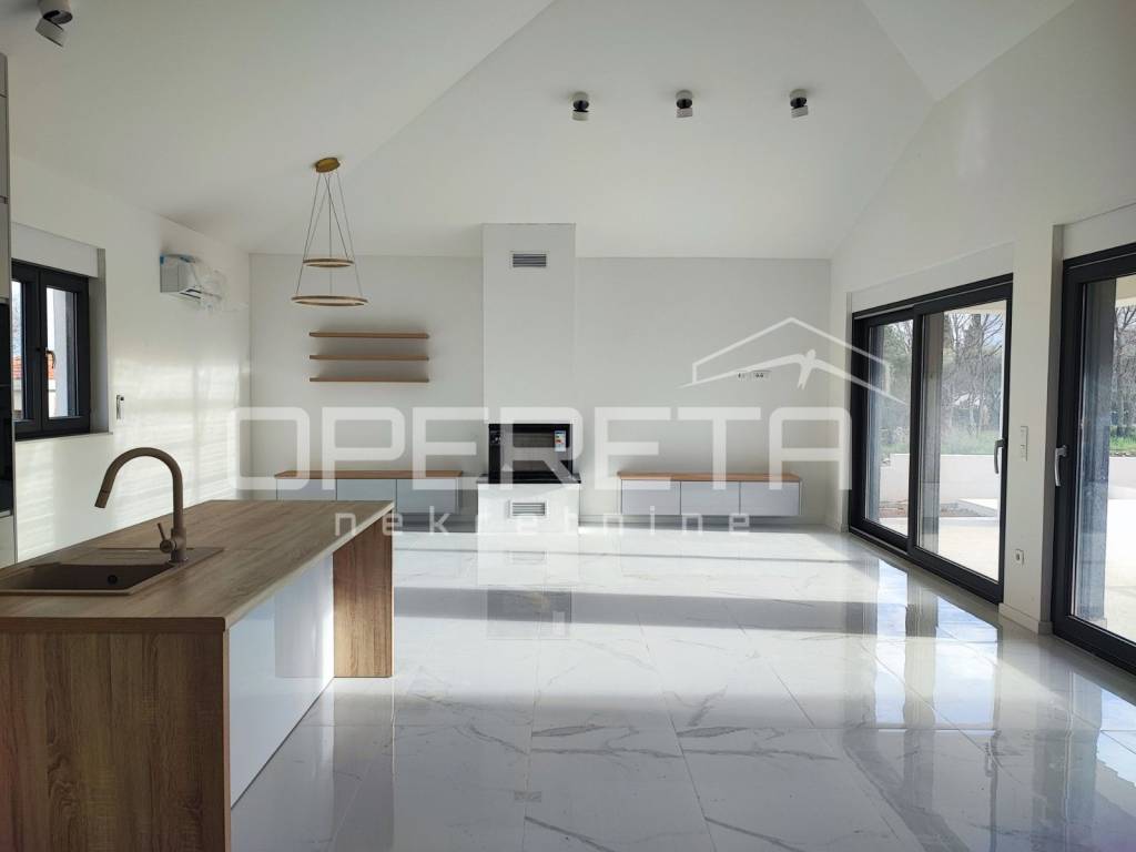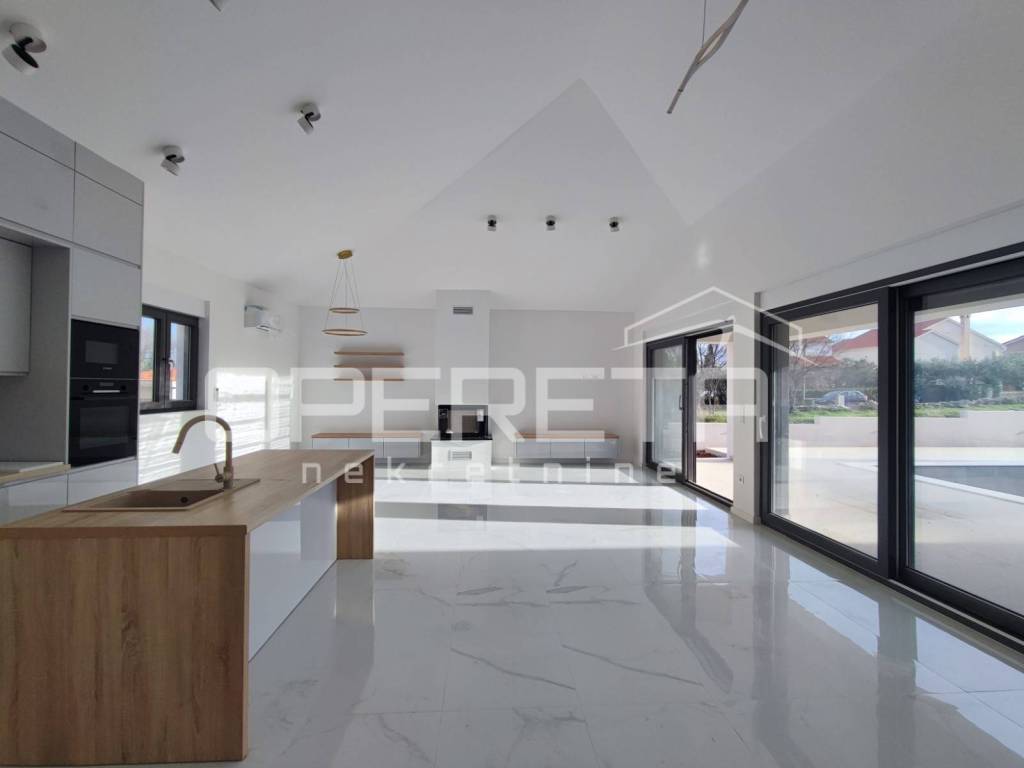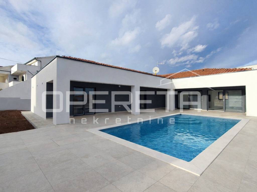 A modern single-storey house with a net living area of 163 m is for sale. The house is situated on a spacious plot of 787 m, in a quiet part of Zadar.