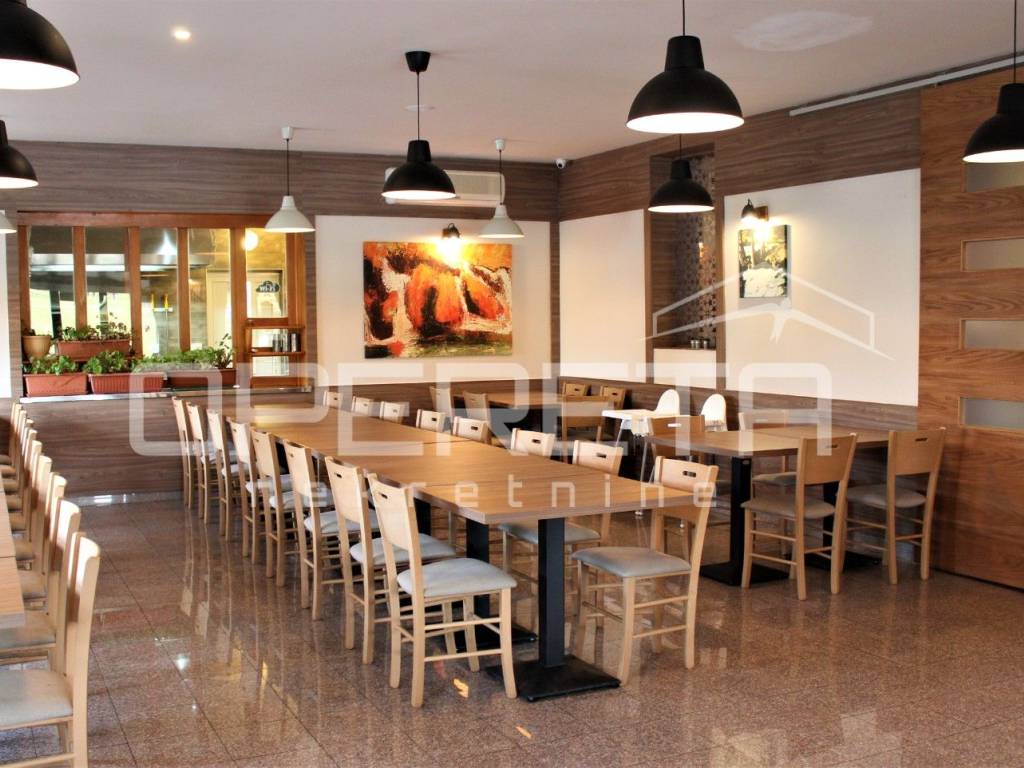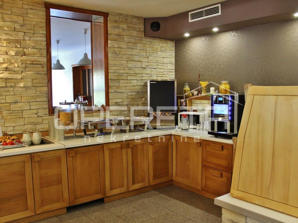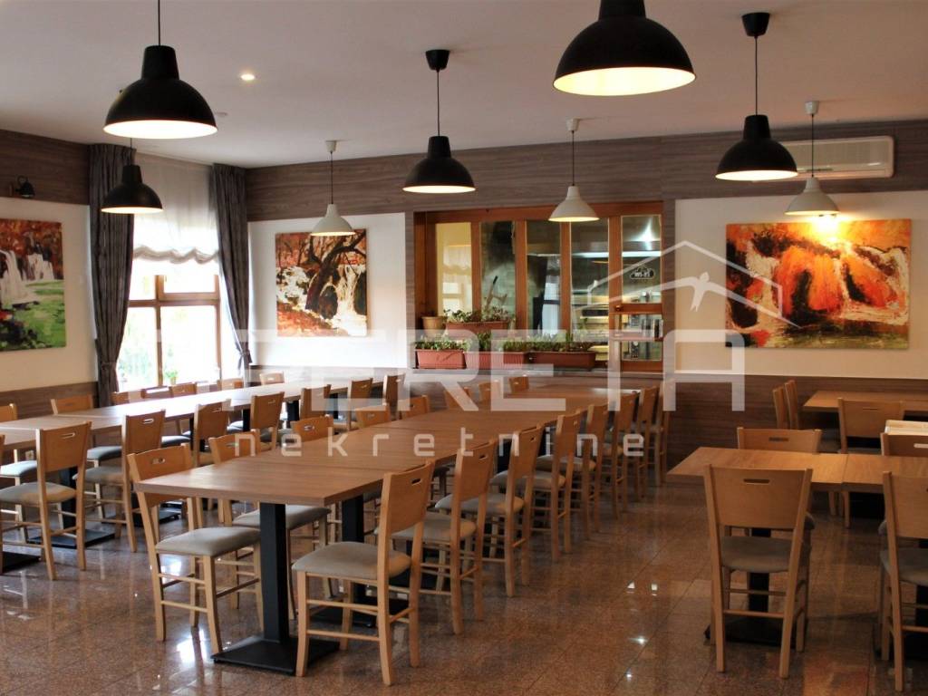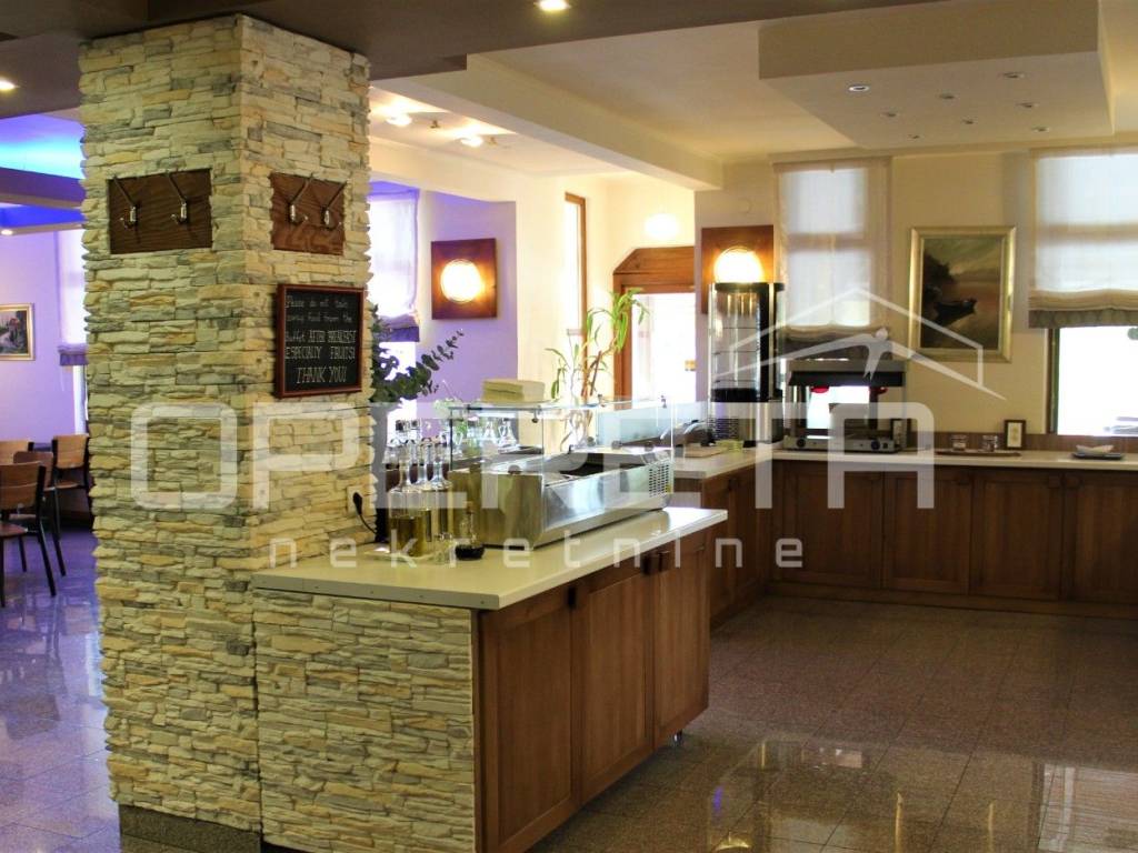 Restoran je u funkciji i sadrži 2 sale, buffet aranžman, veliku natkrivenu terasu, šank, te muški i ženski wc. Jedna dvorana služi kao konferencijska dvorana i može se odvojiti od druge. U stražnjem dijelu restorana nalazi se prostrana profesionalna kuhinja. U podrumu su garaže, rashladne prostorije i nekoliko sustava centralnog grijanja (pelet, drva i ulje).