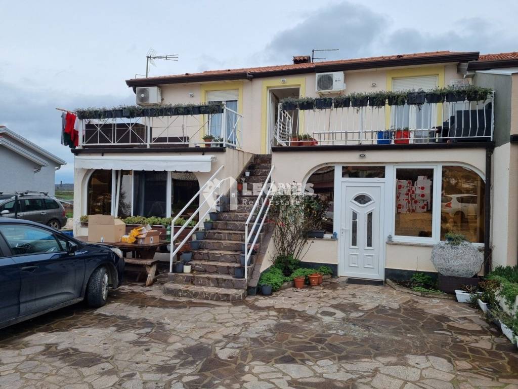 A house with three residential units in the vicinity of Umag is for sale. The area of the apartment on the ground floor is 85 m2 and consists of an entrance hall, a large living room, a kitchen, 3 bedrooms and 2 bathrooms. Last year, a partial renovation was carried out, where direct current (12V) underfloor heating was installed, new tiles were installed and the bathroom was renovated.