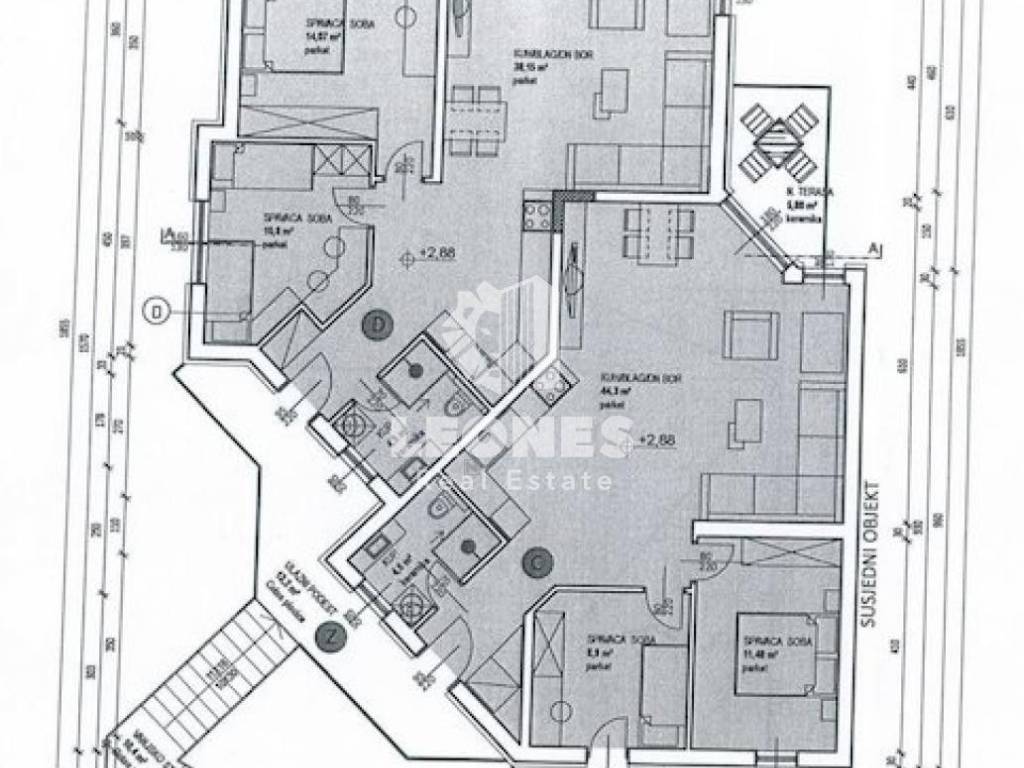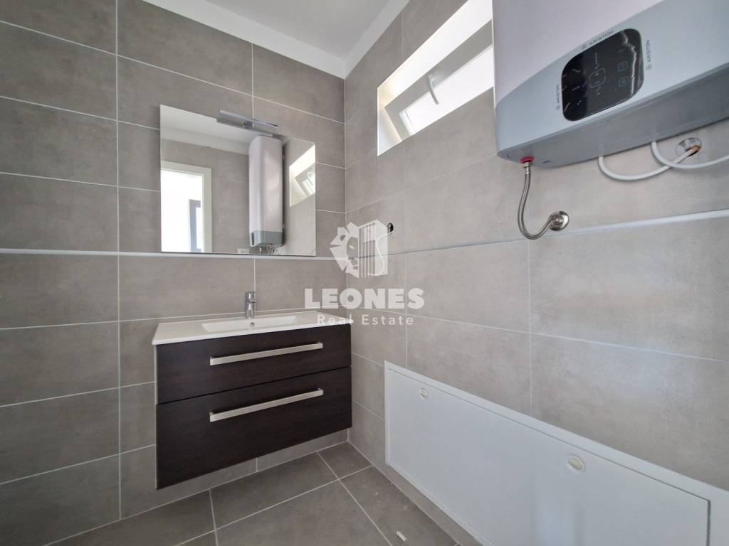 Heating is underfloor via a heat pump, while cooling is a Mitsubishi air conditioning unit. The facade is energy-efficient (10 cm styrofoam), which guarantees low heating and cooling costs. The distance of the apartment from the sea and the beach is 500 m.