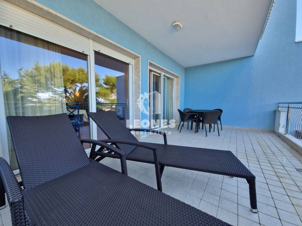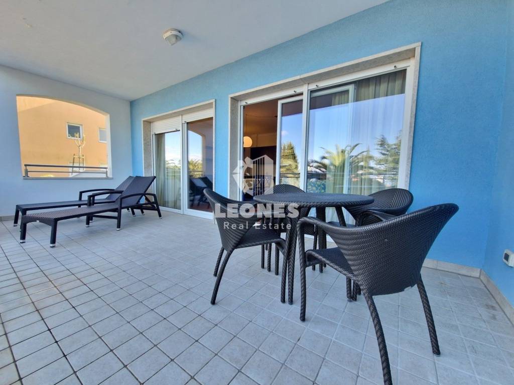 A comfortable apartment with a sea view is for sale in the vicinity of Umag, Crveni Vrh. The area of the apartment is 116 m2 and consists of a living room, a kitchen, a large terrace with a view of the sea, 2 bedrooms, 2 bathrooms and a storage room in the basement. Heating and cooling is on air conditioners. The apartment is sold fully furnished. The building has an elevator. The parking space is for an extra charge.