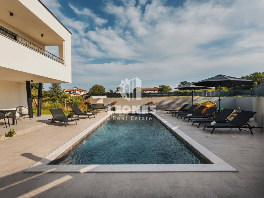 This beautiful detached house with a swimming pool is located in a quiet neighborhood near the town of Umag.