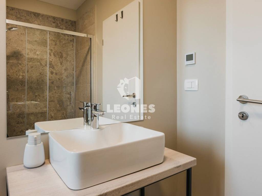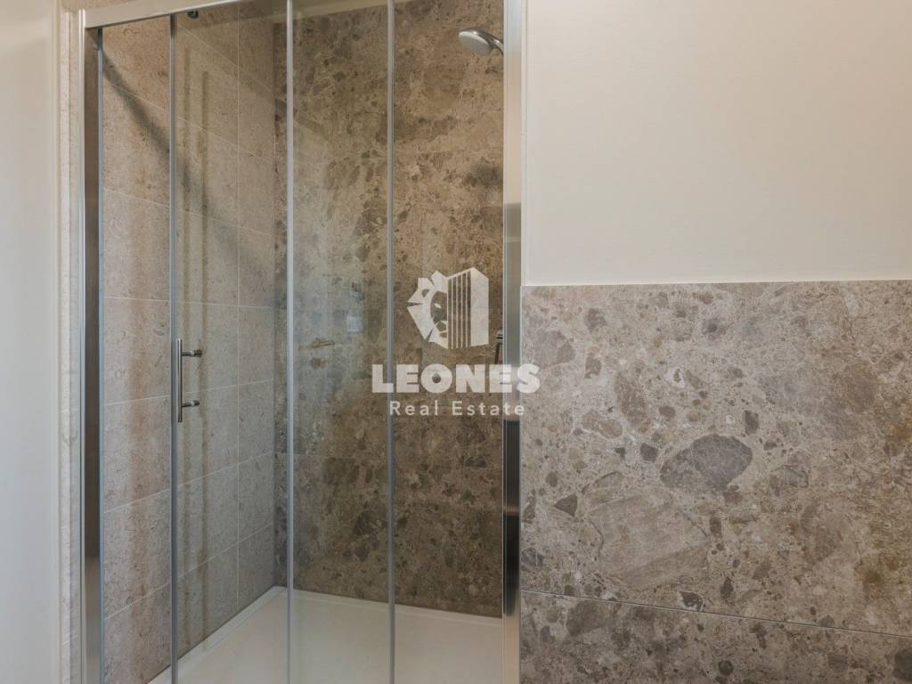 On the first floor, there is a spacious apartment of 126 m2, which consists of an entrance area, a storage room, three bedrooms, a room with exercise equipment, and a large covered terrace with a view of the pool.