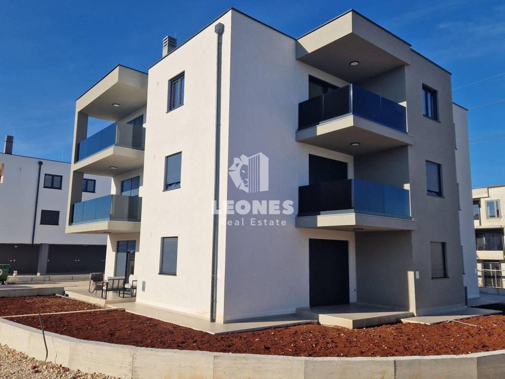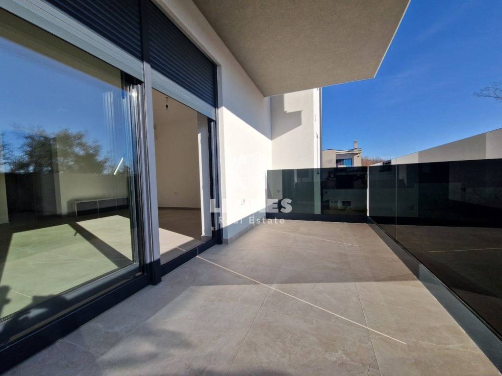Quality apartment for sale in a new building near Umag. The area of the apartment is 65 m2. The building has a total of 6 residential units. The apartment consists of a living room and a kitchen, 2 bedrooms, a bathroom and a terrace. It has one parking space, an external storage room, and it is possible to purchase an additional parking space.