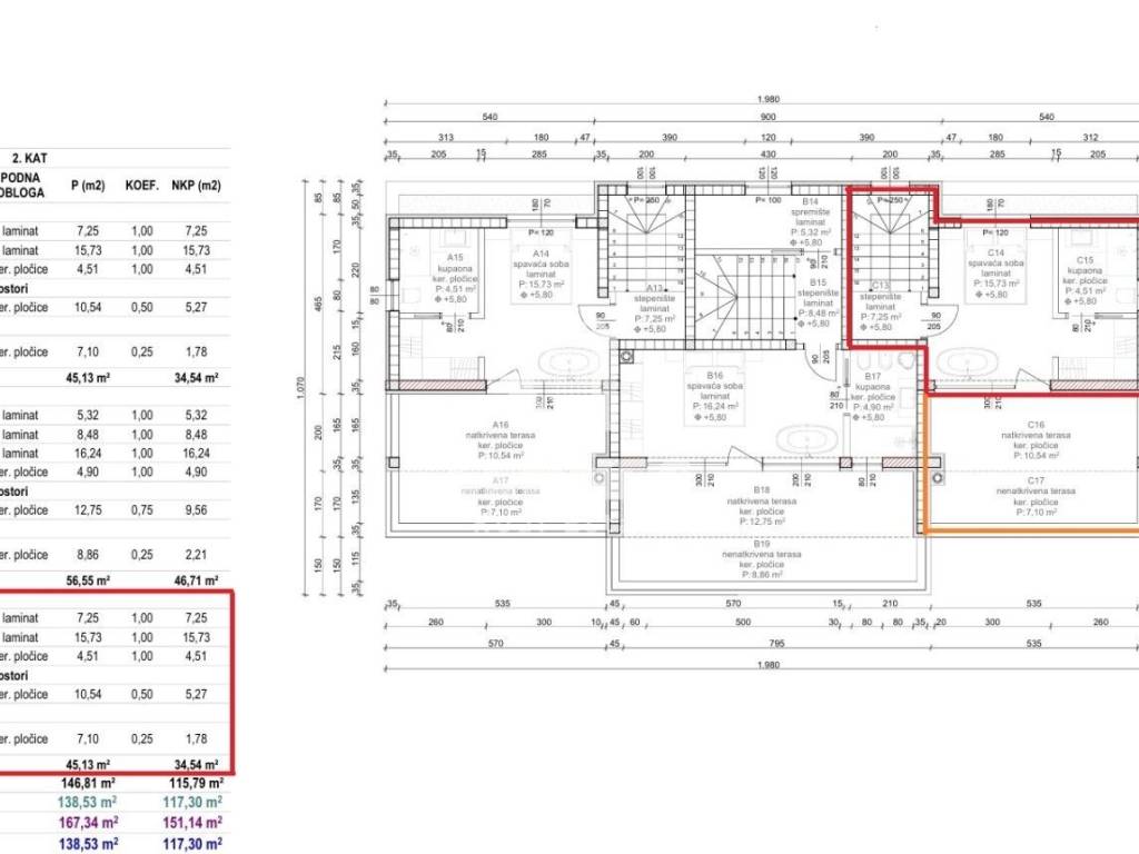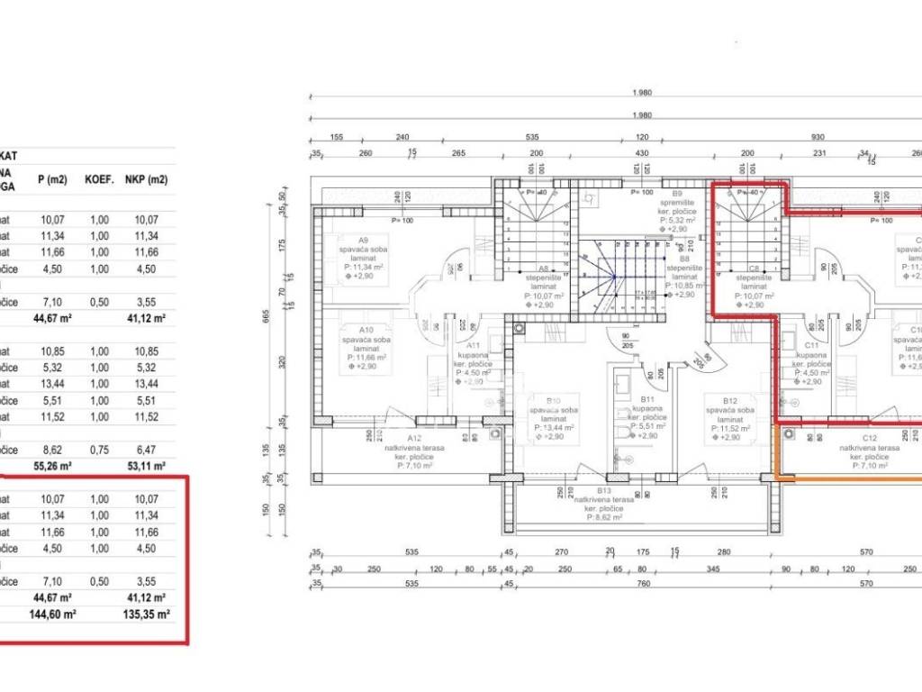 Modern terraced house for sale (unit C) near Umag. The net usable area of the house is 117.38 m2, while the area of the garden is about 200 m2. On the ground floor there is a toilet, a pantry, a kitchen with a dining room and a living room with access to a covered terrace. On the first floor, there are 2 bedrooms, one of which has access to the covered terrace and a bathroom. On the second floor there is a bedroom with its own bathroom and a large terrace with a view of the sea.