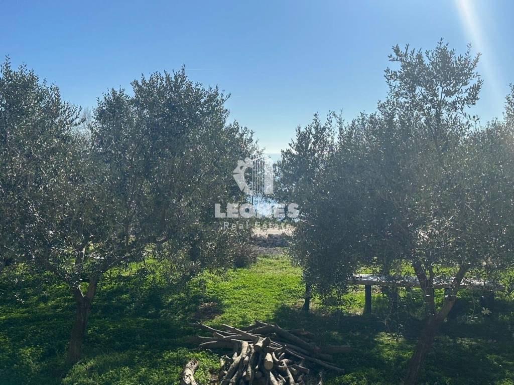 In front of the land there is a church plot with olive trees and a view of nature and the sea.