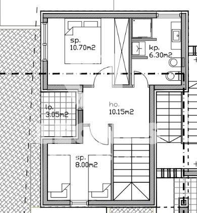 On the second floor there are two bedrooms, a bathroom and a loggia.