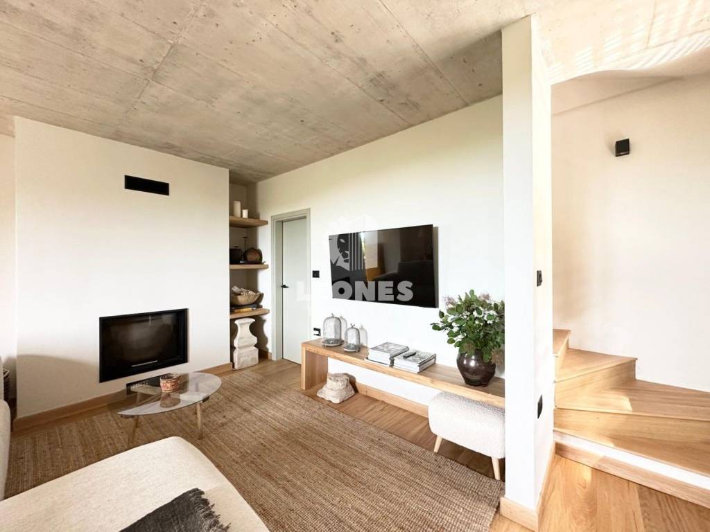 The spacious living room, dining room and kitchen in an open concept create a pleasant and functional space for everyday life and socializing, and the fireplace in the middle creates a unique home atmosphere.