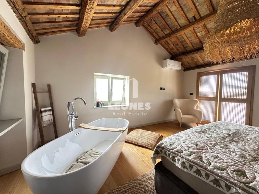 This stone house has three spacious bedrooms, each with its own bathroom - perfect for a larger family or guests It was completely renovated in 2023, with an emphasis on preserving the rustic charm and implementing modern solutions Built-in fan-coils ensure efficient heating and cooling throughout the year
