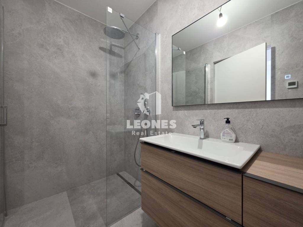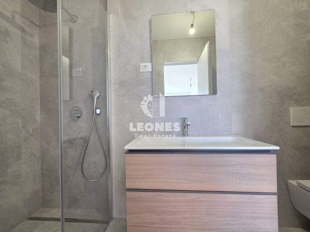 The construction is concrete with Wienerberg Porotherm bricks 25 cm wide while the facade is ventilated with stone wool, which guarantees excellent thermal and sound insulation. The heating is underfloor with aluminum strips while the cooling is with Daikin air conditioners. The joinery is aluminum (Wicona) with triple-glazed glass. The tiles are 120x60 cm in size while the bedrooms have first-class oak parquet. The sanitary facilities are Geberit with low-noise drainage pipes. The building has a large Schindler elevator.
